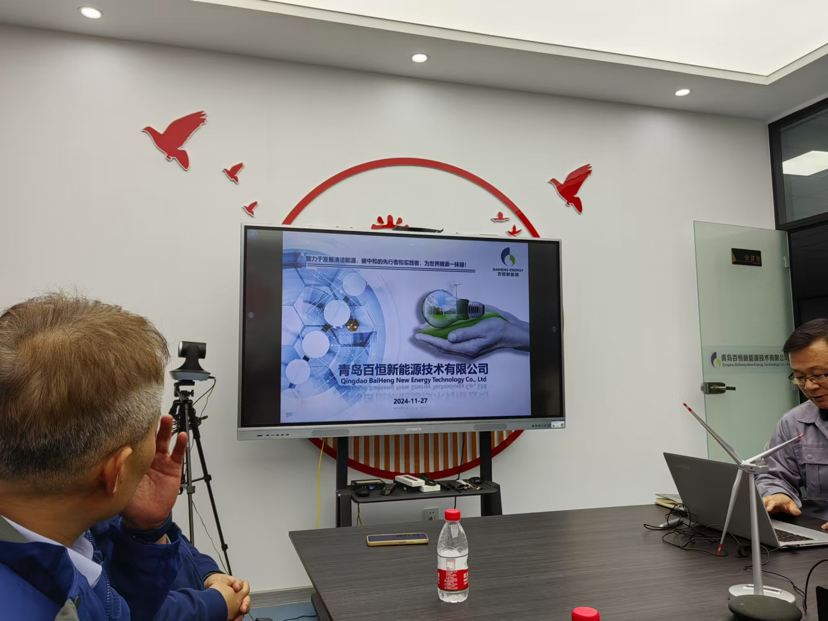 随后,李勋来一行参观了青岛百恒新能源技术有限公司。在企业负责人的陪同下,师生们详细了解了企业的工作环境和文化氛围。企业方详细介绍了公司的发展历程、业务范围以及未来规划,特别是对新能源领域的深入研究和市场前景。学院师生对企业的创新精神和发展潜力给予了高度评价。
