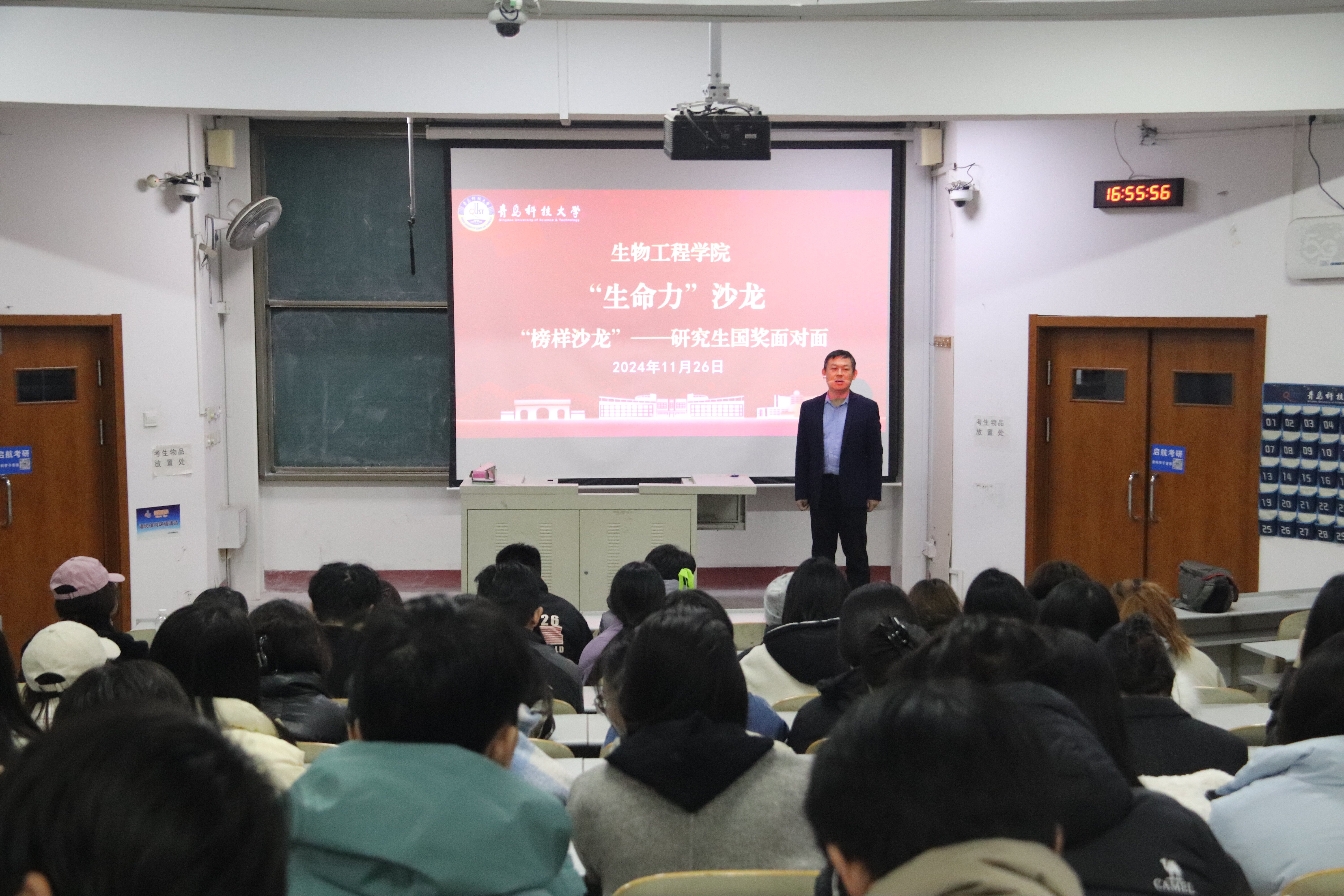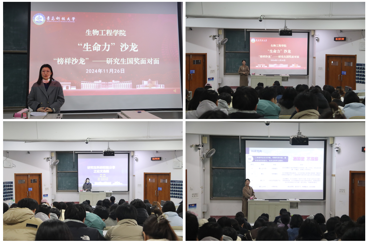 为充分发挥研究生先进典型示范引领作用,营造浓厚的学术科研氛围。11月26日,生物工程学院在2教315教室举行“生命力”系列沙龙(第四期):“榜样沙龙”之研究生国奖面对面活动。本次沙龙邀请学院2024年研究生国家奖学金获得者代表吕钥、杨靖雪两位同学主讲,学院2024级100名研究生参加了此次沙龙。沙龙由学院团委书记兼学工办主任秦洪庆主持。