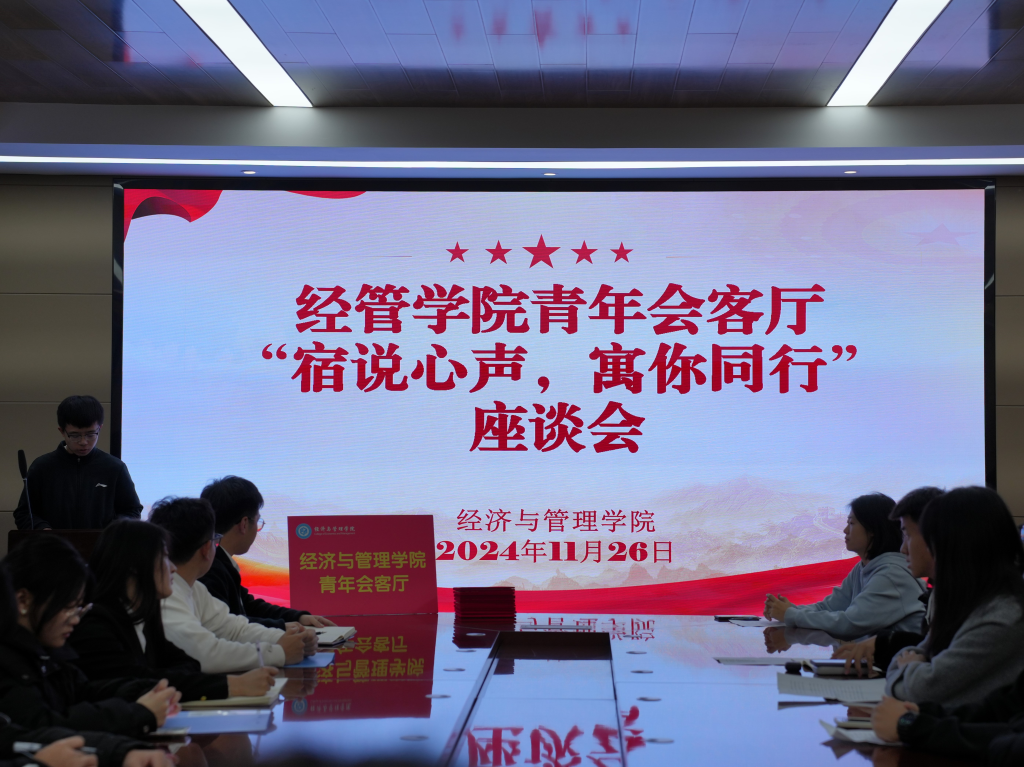为深入发挥青年会客厅的思想引领与榜样示范效能,切实将“朋辈助力”与“青年互促”理念转化为实际行动,经管学院于2024年11月26日下午在经管学院313会议室成功举办青年会客厅系列活动之“宿说心声,寓你同行”座谈会。本次座谈会邀请领跑学长、朋辈力量、学生会部分成员以及24级各宿舍代表共同探讨宿舍帮扶与成长发展之路。