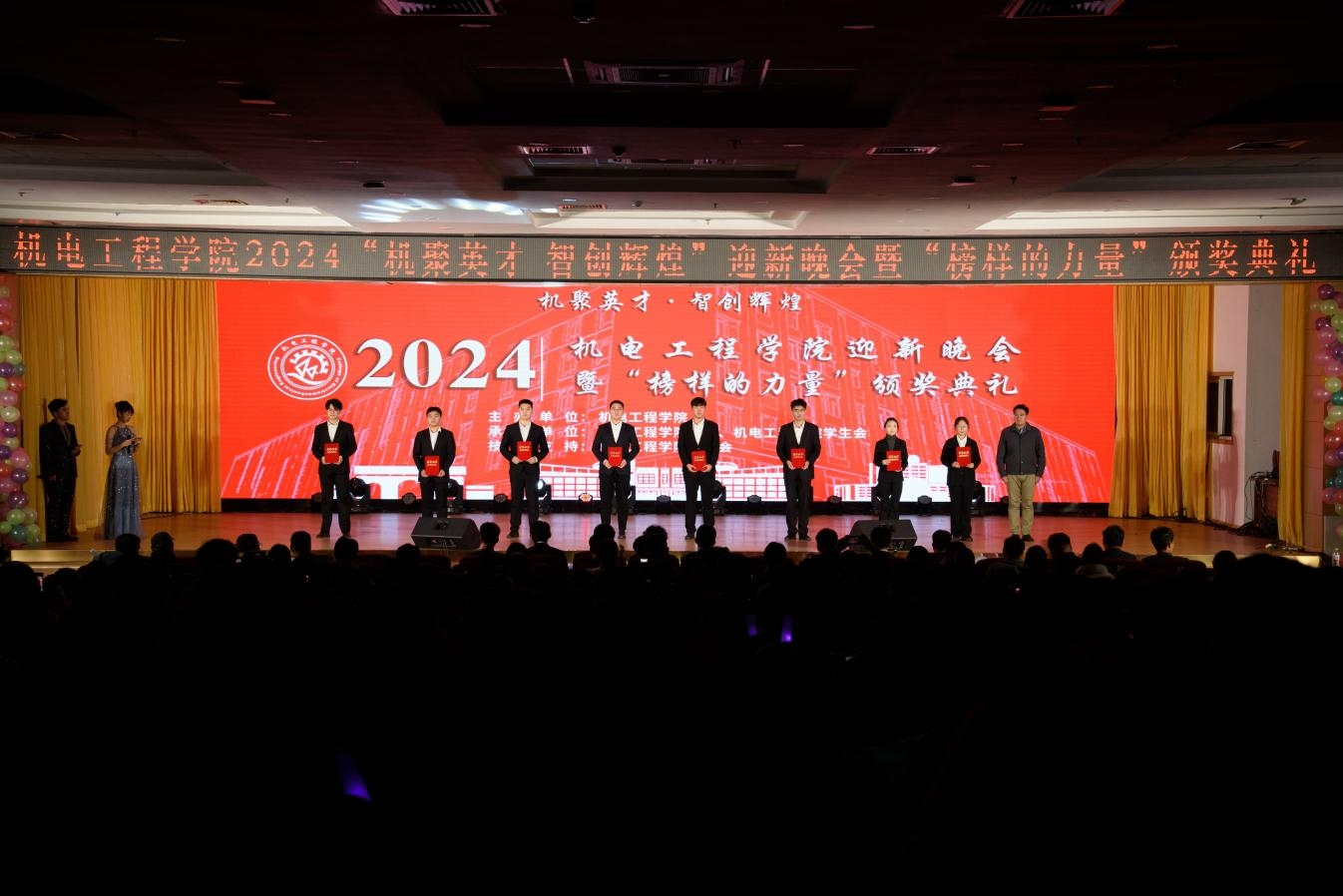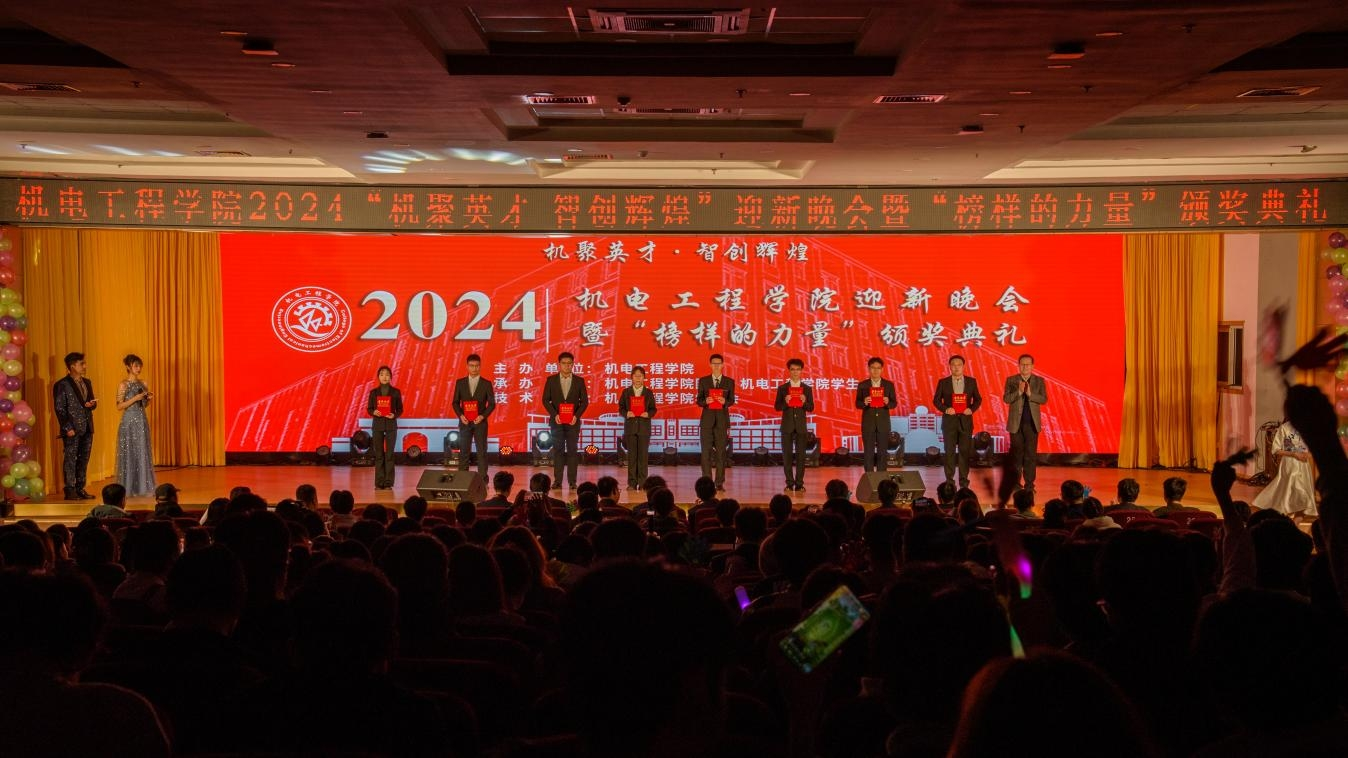 适逢“小雪”,恰得圆满。伟德国际1949官网机电工程学院2024“机聚英才·智创辉煌”迎新晚会暨“榜样的力量”颁奖典礼在机电师生的欢歌笑语中圆满落幕。机电师生将继续秉承“明德、笃学、弘毅、拓新”校训,用行动践行“橡胶品格”,发扬“科大精神”,贯彻“五有”理念。机电学子也将以本次迎新晚会为起点,继续在未来书写勇毅篇章,以饱满的热情投入学习与生活,追逐梦想,一往无前。
