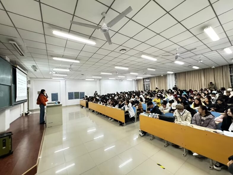 本次活动旨在满足同学们对四六级考试高效学习的追求,帮助同学们找到适合自己的学习和备考方法,进而提升学习能力和综合素质。四位主讲人结合自身丰富的备考经验,从听力、阅读、写作和翻译四个方面为同学们详细介绍了英语四六级的学习方法。王海圻从日常练习的角度出发,强调了“多听、精听、泛听”相结合的重要性并分享了如何利用历年真题进行针对性训练。杨欣翌从写作的基本框架、段落构建、语言表达等方面进行了详细讲解;卜韵琪、杨舒琨分享了她们在阅读备考中的独到见解,包括如何高效扩充词汇量、如何快速定位关键信息、如何准确理解文章主旨等应试技巧。