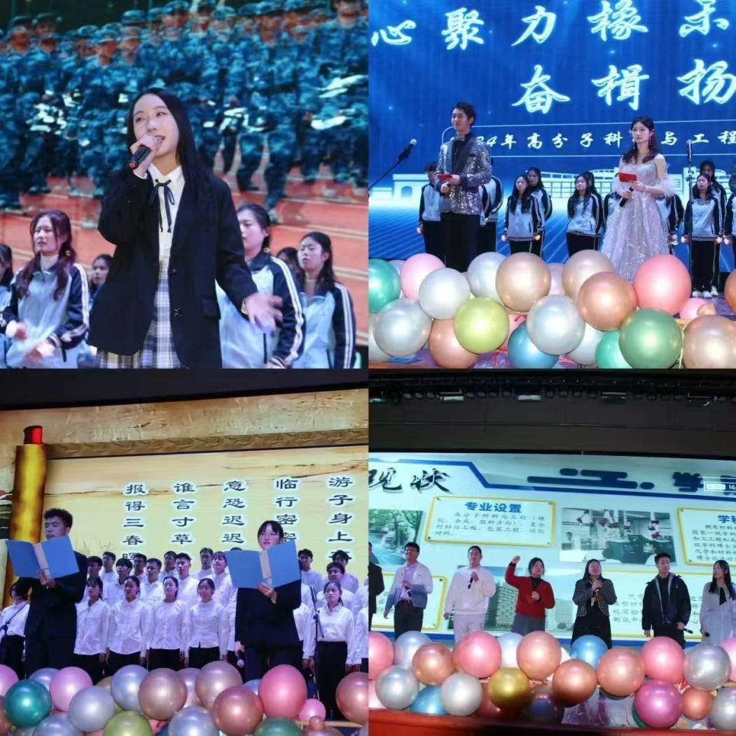 高分子学院第二十六届学生会带来的歌舞《聚合吧,高分子!》以青春活力的姿态执青春之笔,书写时代青年的壮丽华章。