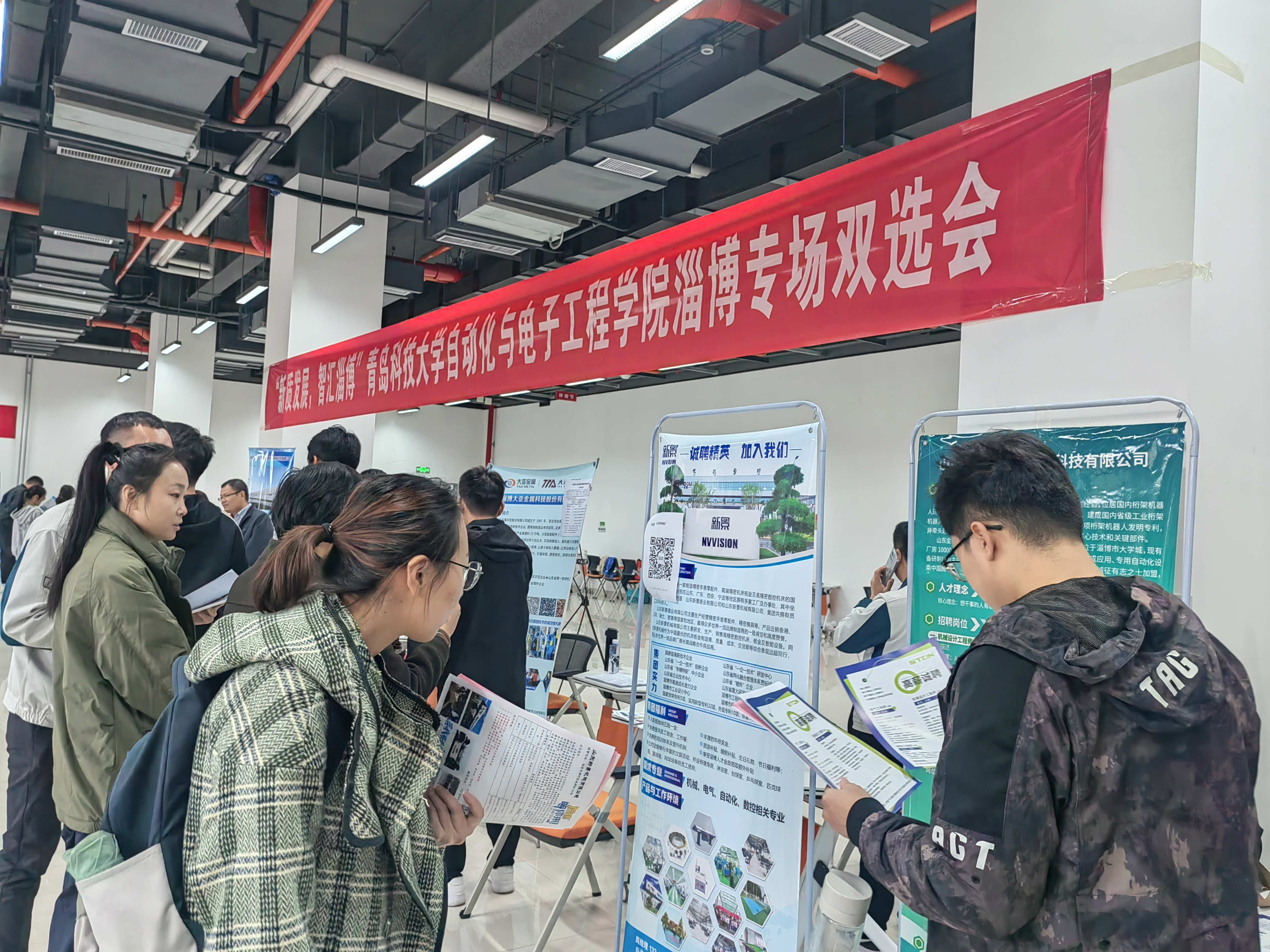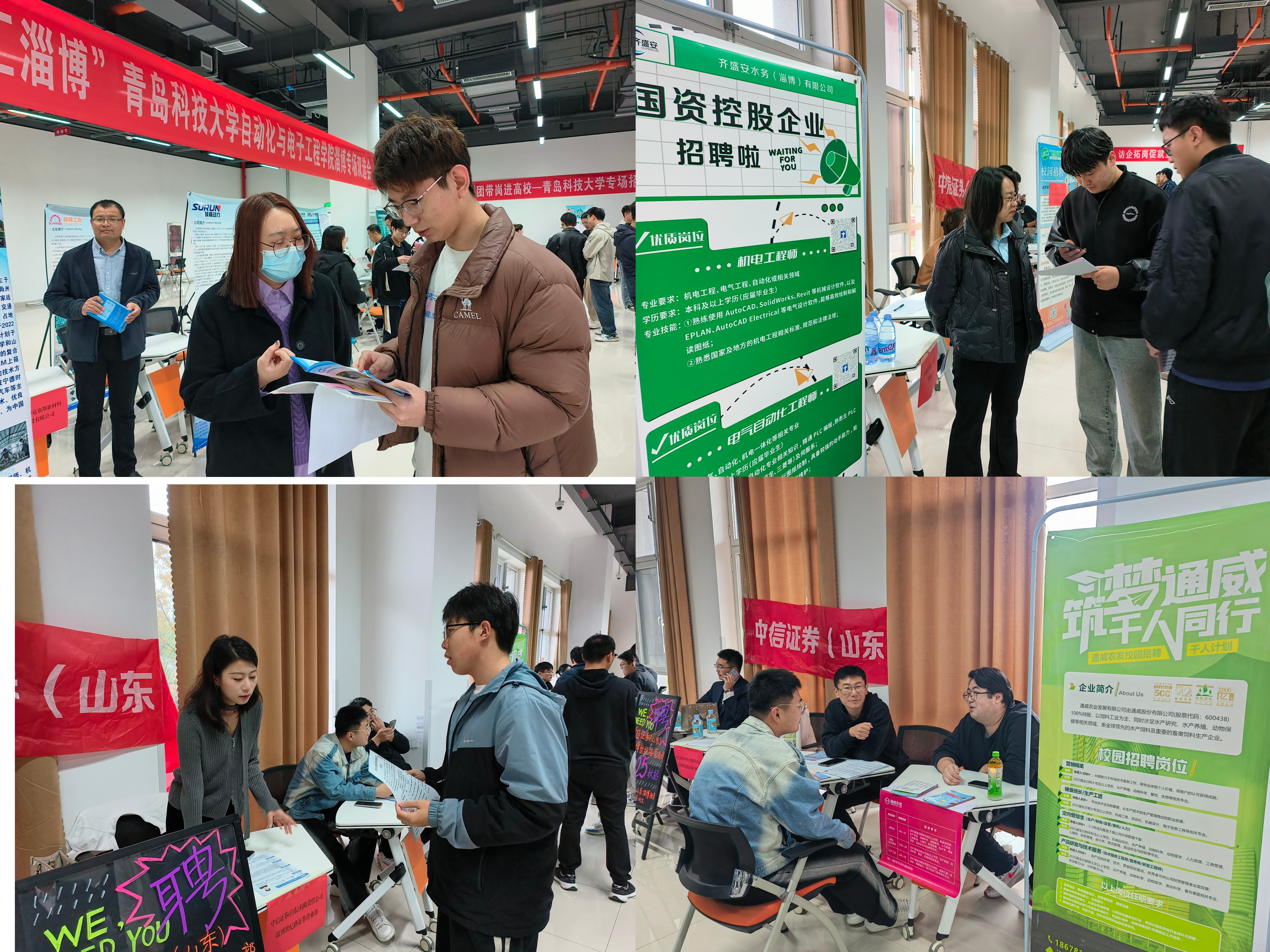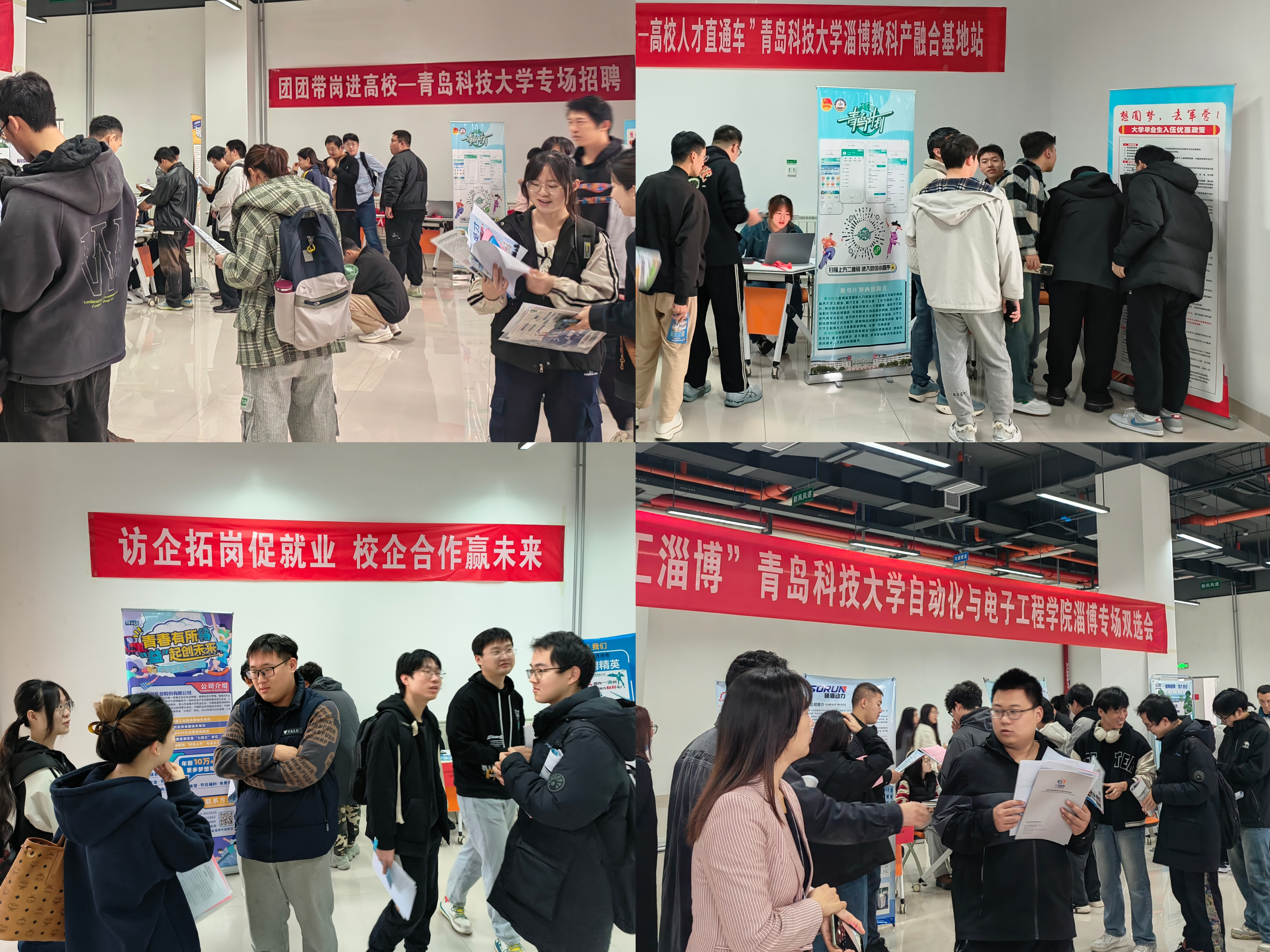 为进一步贯彻落实《中共中央国务院关于实施就业优先战略促进高质量充分就业的意见》,深化学校与地方和企业合作,推动毕业生实现高质量充分就业,11月14日,自动化学院联合淄博市人社局就业人才中心,在淄博教科产融合基地举办“新质发展 智汇淄博”2025届毕业生专场双选会。此次双选会靶向邀请新华制药、英科医疗等27家当地优质企业,面向自动化、电气工程、计算机、仪器仪表等多个行业专业,提供招聘岗位230余个。近500名在淄博教科产融合基地生产实习的学院2025届毕业生参加,据不完全统计现场投递简历400余份。