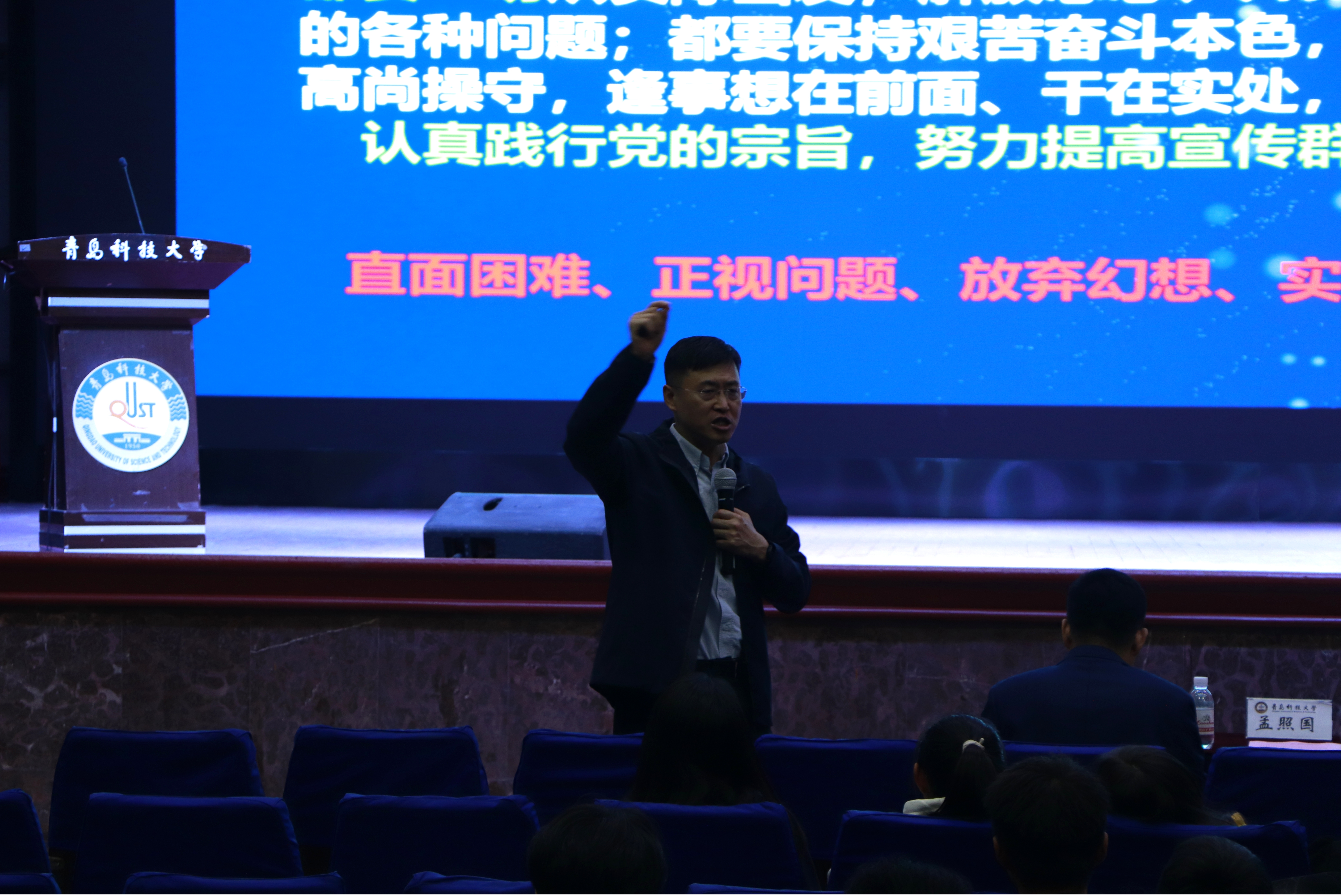 仪式最后,山东国瓷功能材料股份有限公司创始人之一、董事、党委书记宋锡滨为材料学子开展讲座。宋锡滨就“新材料高质量发展之我见”为主题,介绍我国在材料领域方面的国际地位与影响,详细讲解新材料在科技创新、国家高质量发展的重要意义。同时,宋锡滨通过自身丰富经历、广泛的知识兴趣的涉猎,激励材料学子不要满足于自身的舒适区,勇于迈出第一步,广泛获取知识,成长为一名综合性的、高能力的、勇承担的新时代强国的建设者。