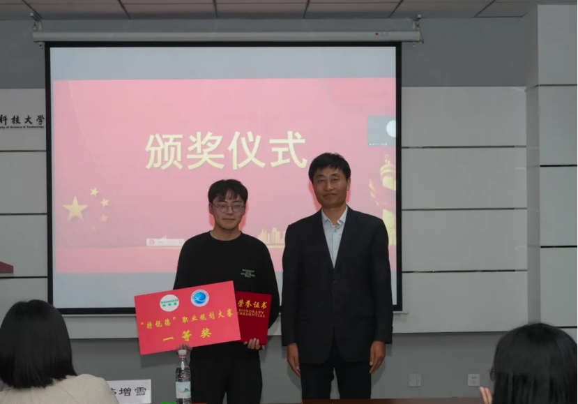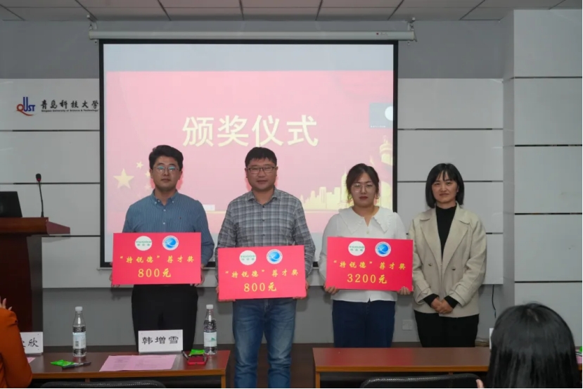 大赛现场,韩增雪为获得2024年“特锐德”荐才奖的马寒、张郁浩、安柏雅三位老师颁奖。自动化与电子工程学院辅导员赵赪赪对赛事进行说明。