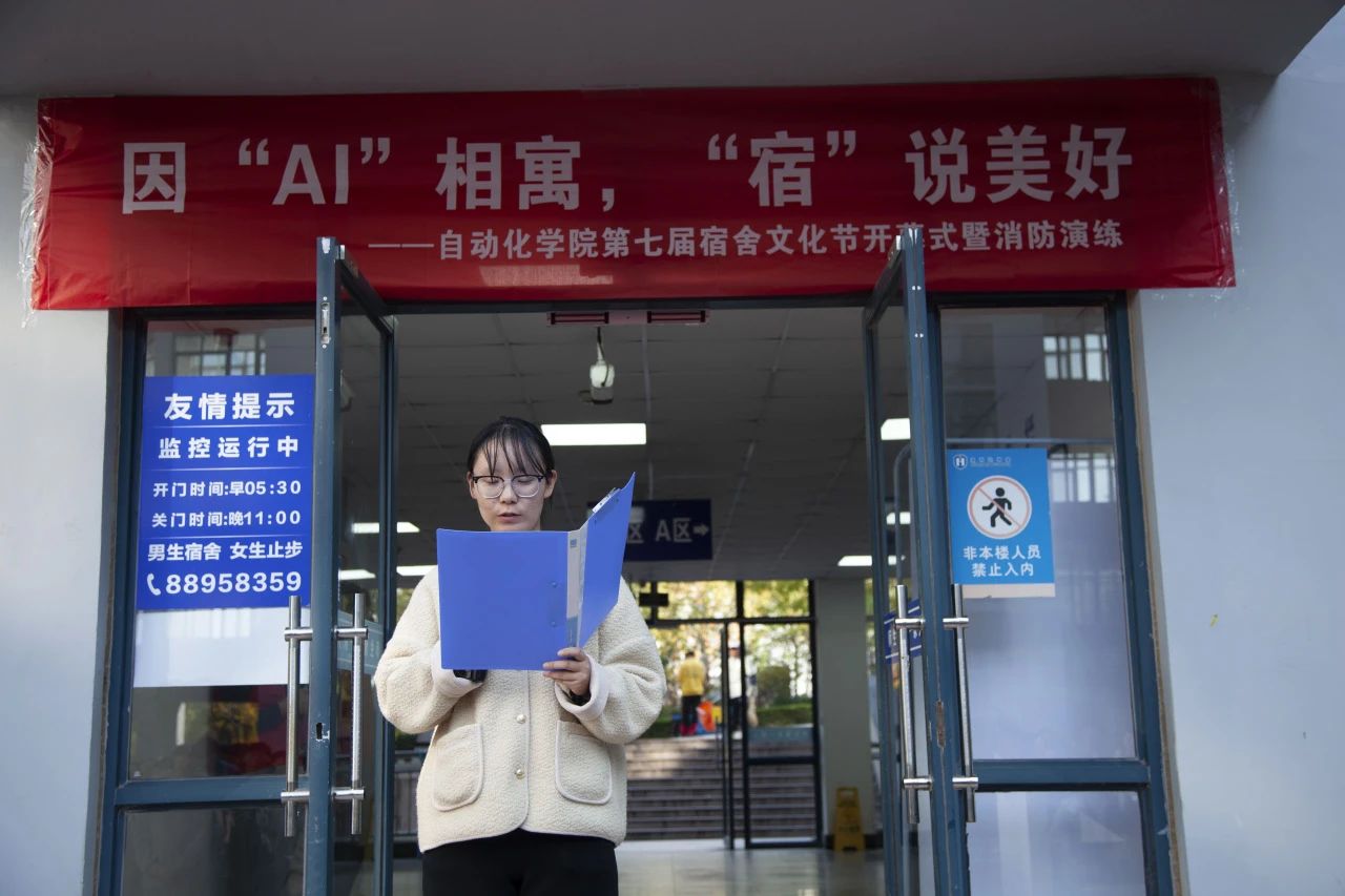 为保障学院学生宿舍生活安全,丰富学生的宿舍文化,提高宿舍成员之间的团队合作意识和创新精神,营造“安全、卫生、和谐、文明”的宿舍文化氛围,10月29日下午,自动化与电子工程学院第七届“因‘AI’相‘寓’,‘宿’说美好”宿舍文化节暨秋季消防演练启动仪式在北七宿舍楼院内正式开幕。学院党委副书记兼副院长刘名森,安全管理处消防科科长赵淑东、老师余全波,北苑七号宿舍楼楼长郝水燕,学院辅导员刘志飞、丁雅琼、李卓林及23、24级全体学生参加此次活动。