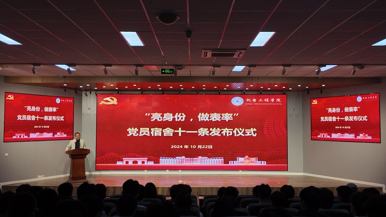 10月22日,机电工程学院在机电楼530会议室举行“学院党员学生宿舍十一条”发布仪式,深入落实学校宿舍文化建设整体工作部署,让中共党员“亮身份、做表率”,学院辅导员、全体学生党员参加活动。