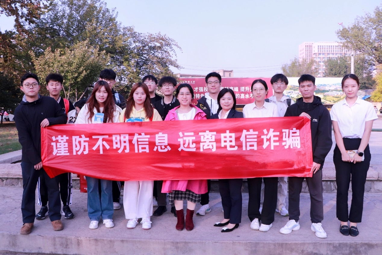 为积极响应国家关于加强反诈骗宣传教育号召,材料学院于10月24日联合华夏银行举办反诈骗宣传教育活动,旨在通过生动有趣的讲解和互动,增强同学们的反诈骗意识,保障生命财产安全,材料学院辅导员付文静、柳锡远带领学院学生参加了本次活动。