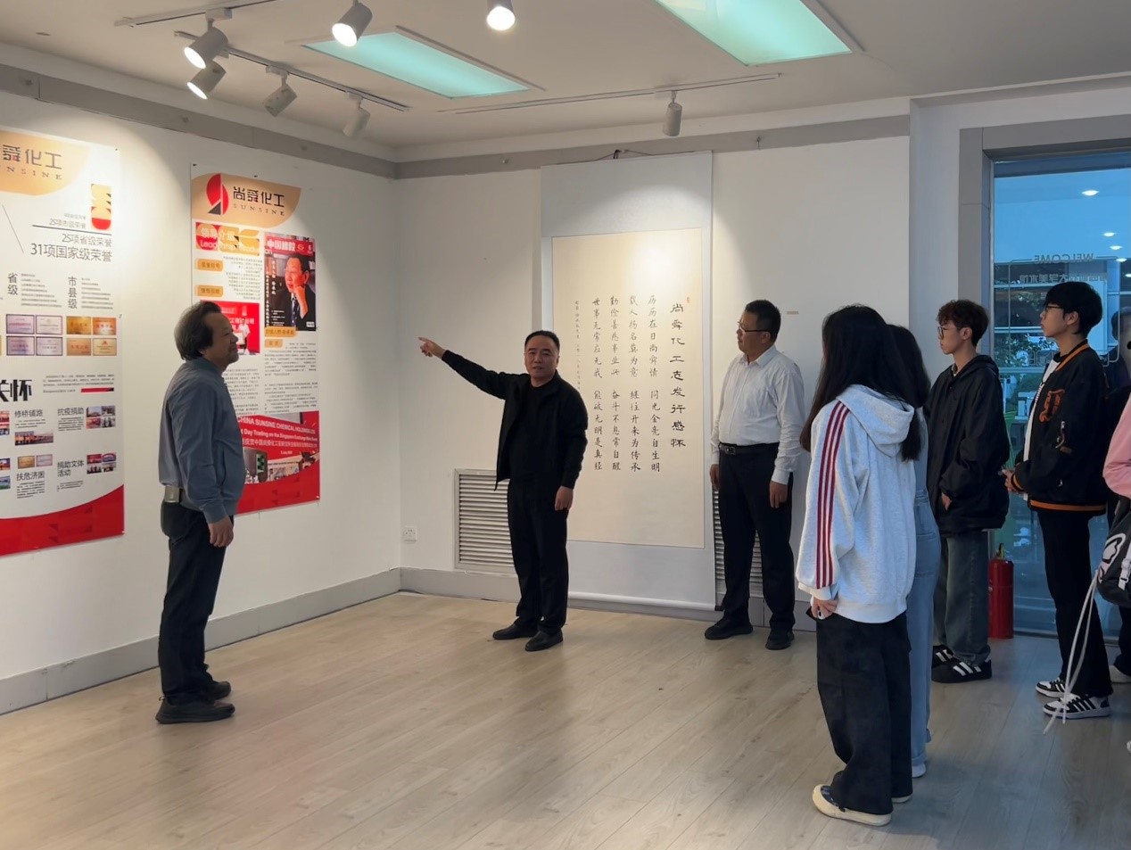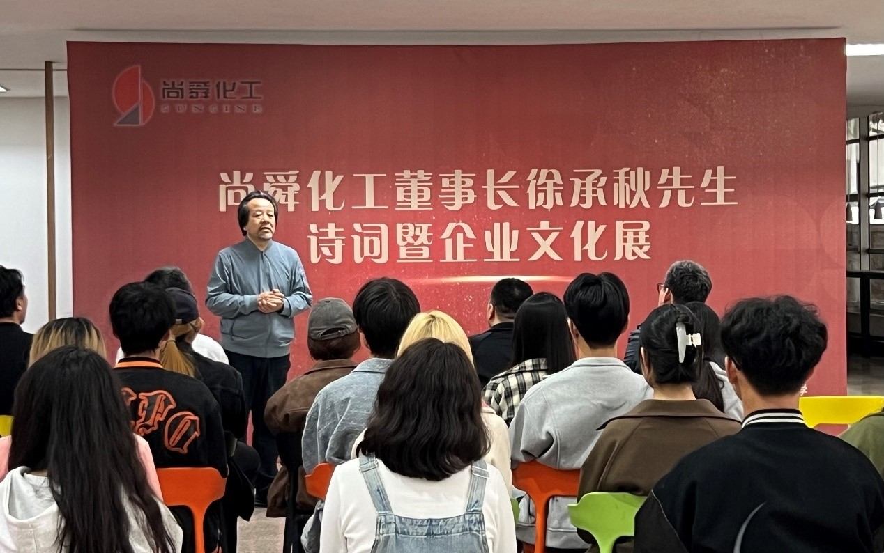 为进一步凝聚校企合作力量,探索校企协同育人的人才培养模式,全面提升学生的综合素养,10月18日下午,尚舜化工董事长徐承秋先生诗词暨企业文化展览活动在崂山校区艺术学院美术馆举行。1996届校友、尚舜化工办公室主任潘鹏勇,艺术学院院长李宏文,党委书记刘庆出席活动。活动由刘庆主持。