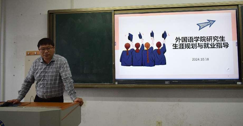 为落实学校《关于规范主题班会活动开展的通知》有关要求,进一步增强外国语学院学生职业生涯规划与职业发展意识,明晰生涯发展道路,提升自我认知水平和职业探索能力,外国语学院于10月18日在弘毅楼B411、B412教室举办职业生涯规划与就业指导主题班会暨企业招聘宣讲会。主题班会由学院党委副书记兼副院长、研究生辅导员马寒主讲,受邀企业代表、外国语学院2022级、2023级研究生参加本次活动。