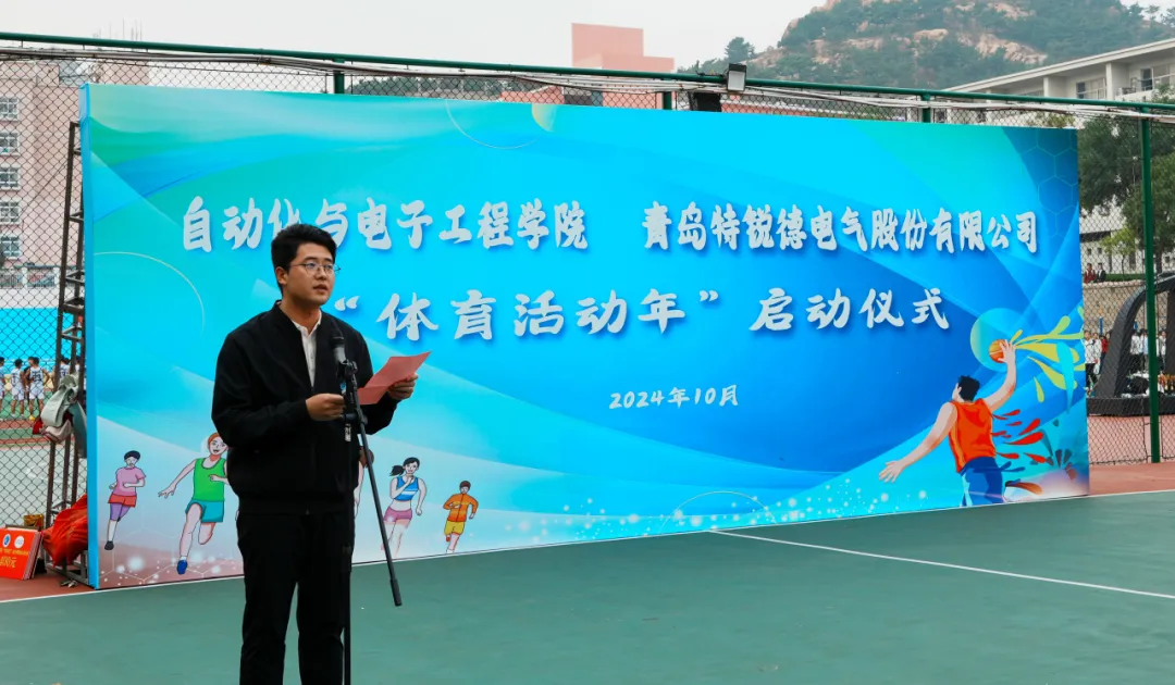 为进一步增强学生体质,弘扬体育精神,促进校企合作在体育领域的深度融合,10月15日下午,自动化与电子工程学院与青岛特锐德电气股份有限公司联合举办的“大学生体育活动年”启动仪式于南苑篮球场举行。青岛特锐德电气股份有限公司人力资源中心人力总经理助理张莹,学院党委书记李卉,学校教务处专职教学督导员楚晓东、学生处副处长李春家、团委副书记李浩,学院党委副书记兼副院长刘名森出席启动仪式。仪式由学院团委书记兼学工办主任雷静主持。