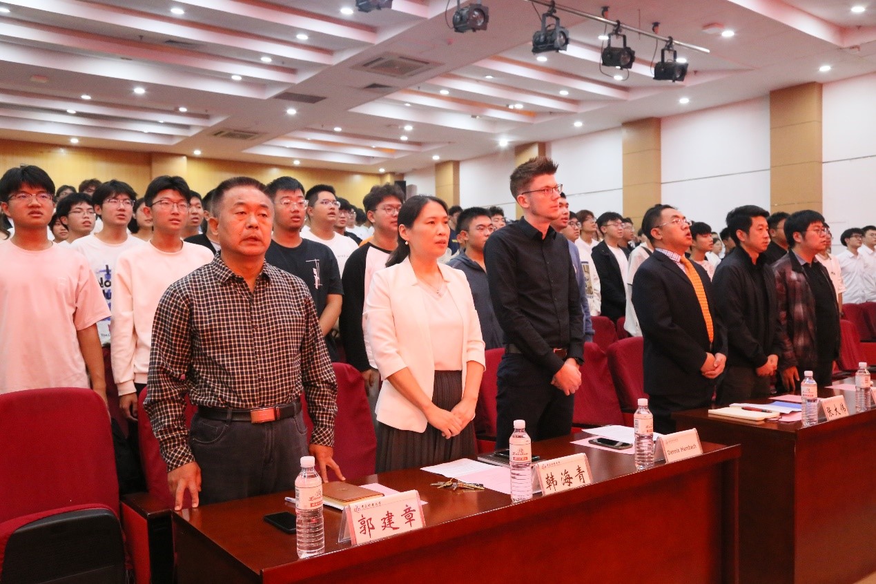 开学典礼暨德语等级考试成绩优异学生表彰仪式在雄壮的国歌声中拉开帷幕。