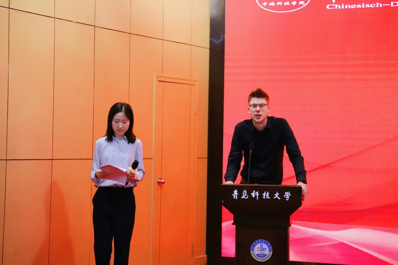 德方代表Dennis Hambach表达了对学院全体师生的赞美和祝福,并期待双方持续开展密切合作。他指出,同学们肩负着利用科学知识与创新理念改造世界的责任,希望同学们通过在国外的学习,深入了解德国文化,探索新事物,结交新朋友。