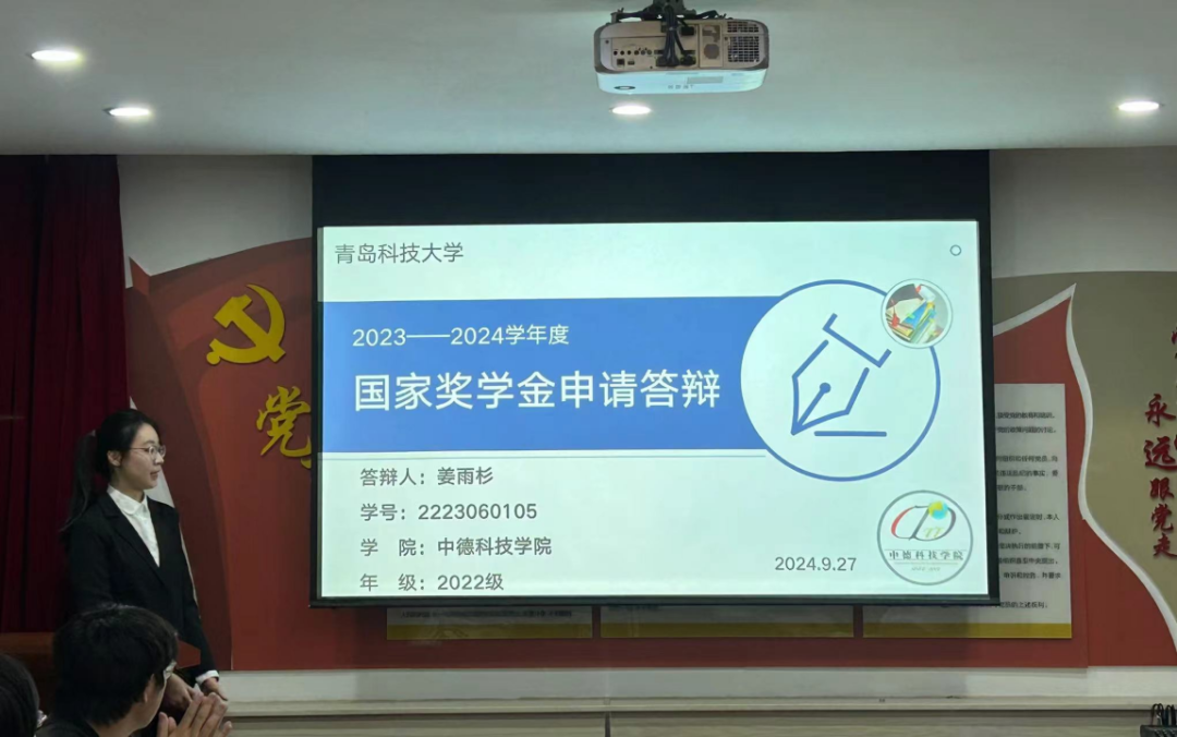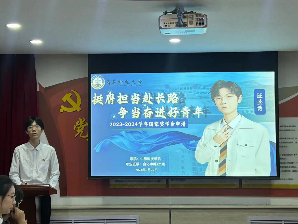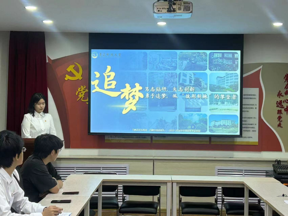 927日,中德科技学院在A5101会议室举行2023-2024学年国家奖学金、省政府奖学金答辩会。学院团委书记兼学工办主任李怡然、辅导员和学生代表参会,辅导员董海凌主持本次答辩会。