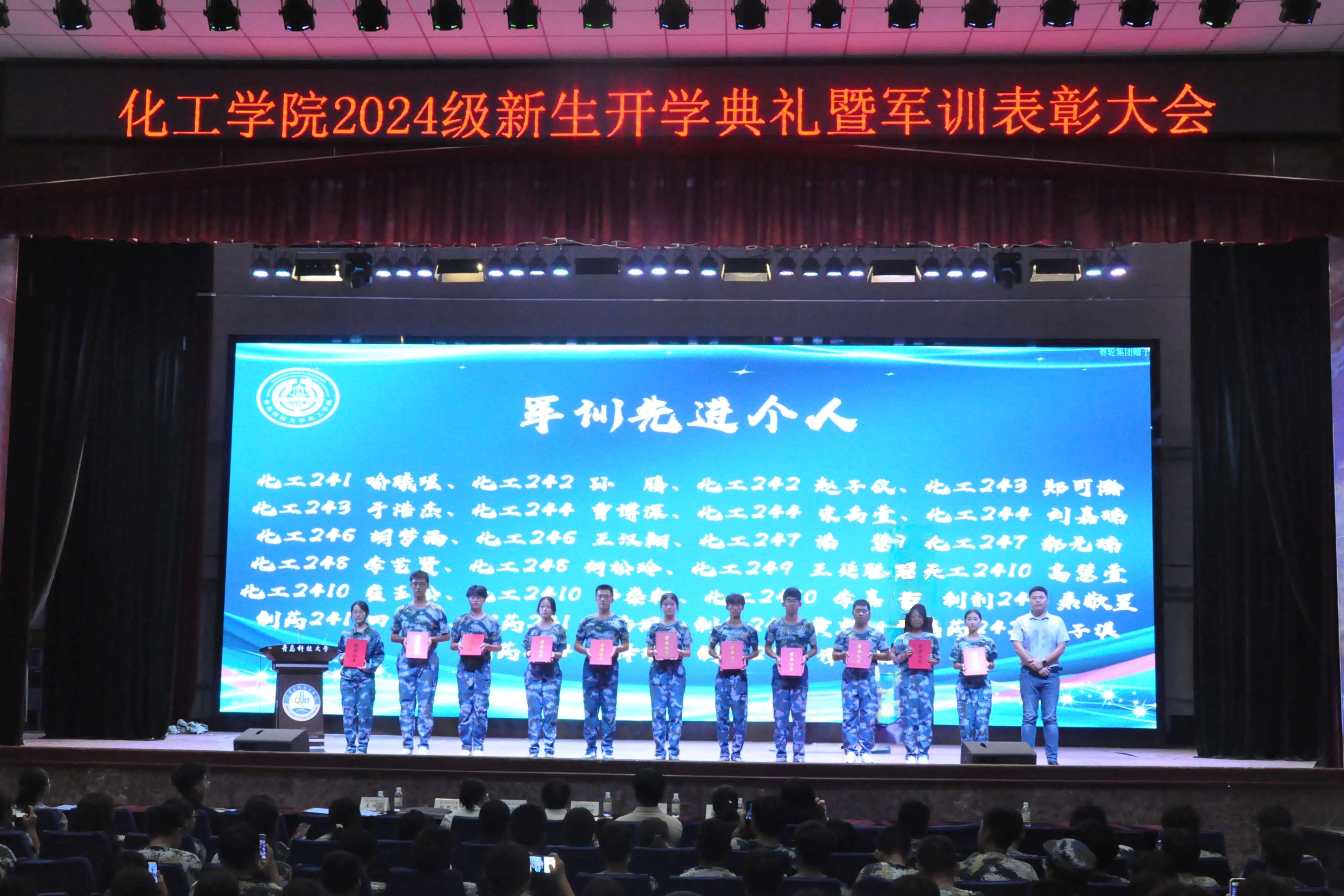 贾建闯宣读了《关于表彰化工学院2024级新生军训先进集体和优秀个人的决定》,与会领导、老师为获奖的集体和个人颁发了荣誉证书。