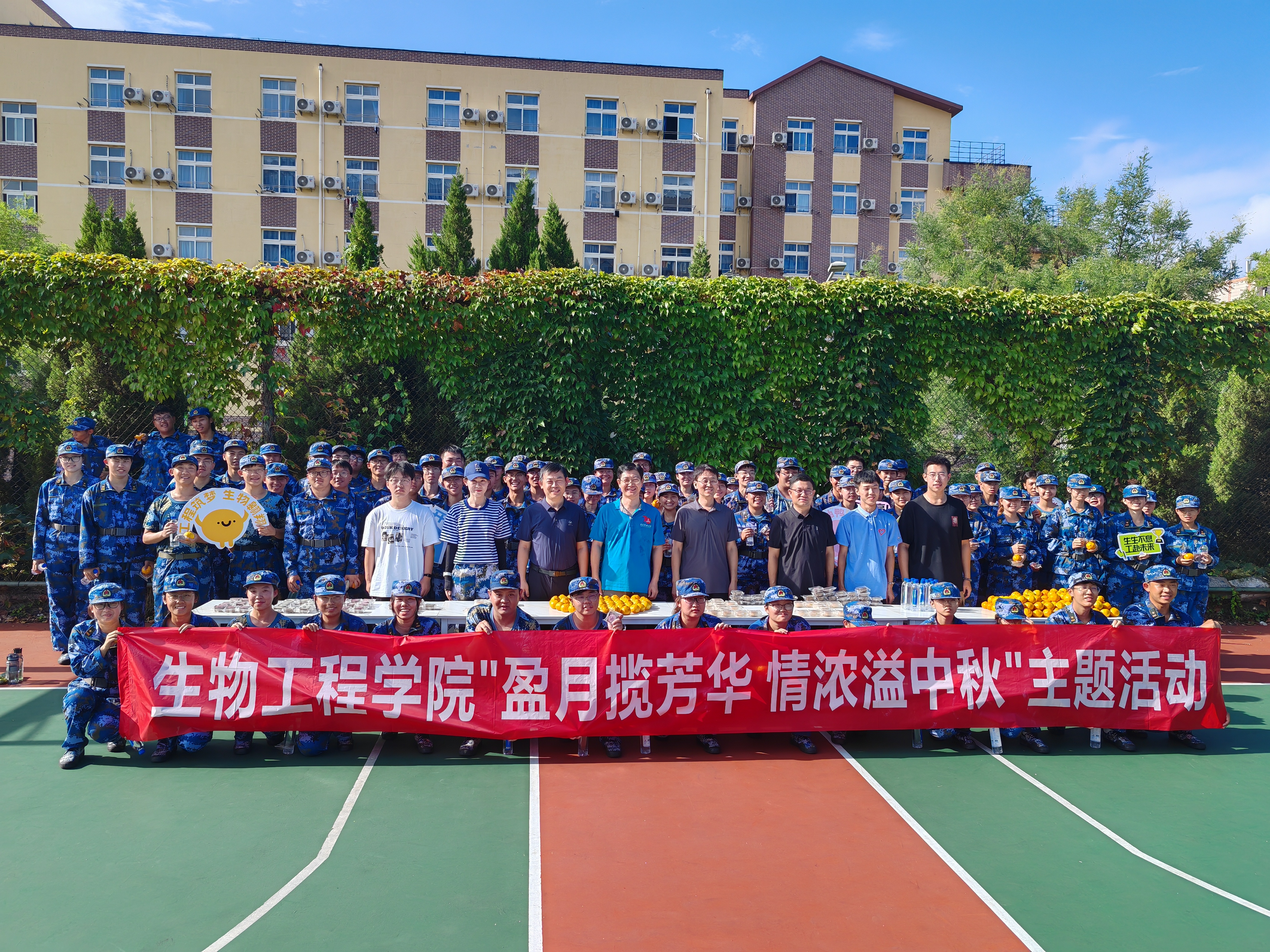 活动现场整齐摆放的科大专属月饼、爱心形状的橙子、一箱箱的矿泉水……这无一不体现着生物工程学院对所有学生的用心。老师们将印有学校校训的月饼亲自交到了每位同学的手里,并与所有同学合影留念。这不仅让大家感受到了学校对每位学子的殷切期待,更让每一位远离家乡的学生都能感受到家的温暖与关怀。