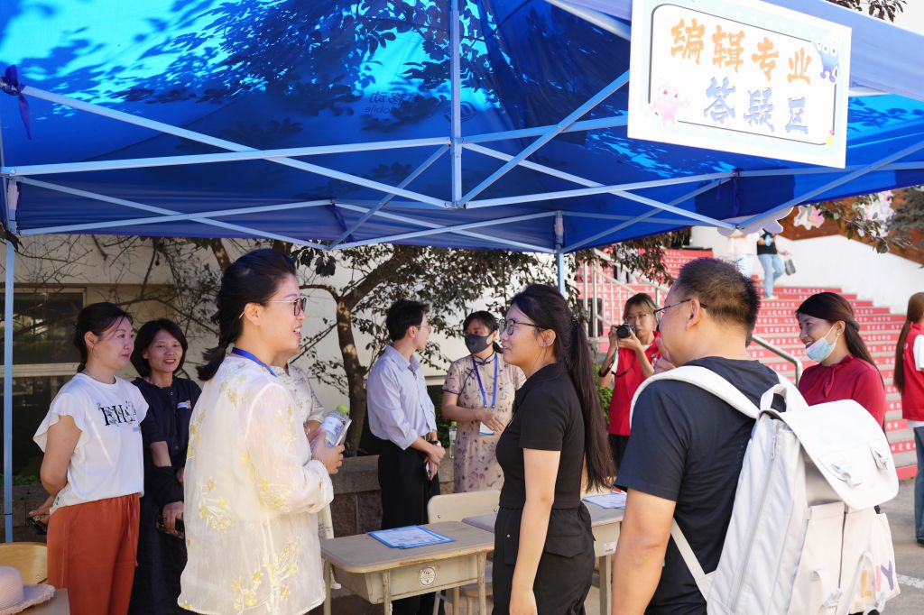 学科向度:以学科引领彰显专业特色。学院以毕业展迎新生代,迎新现场摆放动画专业毕业生设计作品展,在展示动画专业作为国家一流专业人才培养成果的同时,引导新生做好学业生涯规划,体现以终为始、传递未来、生生不息的传承。设专业答疑区提升学科认知,现场设置专业教师现场答疑区,学院院长、党委书记、教授、导师及班主任等老师在迎新一线全程指导,详细介绍学院专业设置、培养计划、课程体系等内容,帮助新生明确方向,树立信心。以家长见面会搭建家校桥梁,学院组织“家校携手 共育花开”新生家长见面会,向新生及家长全面阐述学院的历史、专业特色与就业前景等,助力新生及家长认识学院、认识专业,强化家校共育合力。