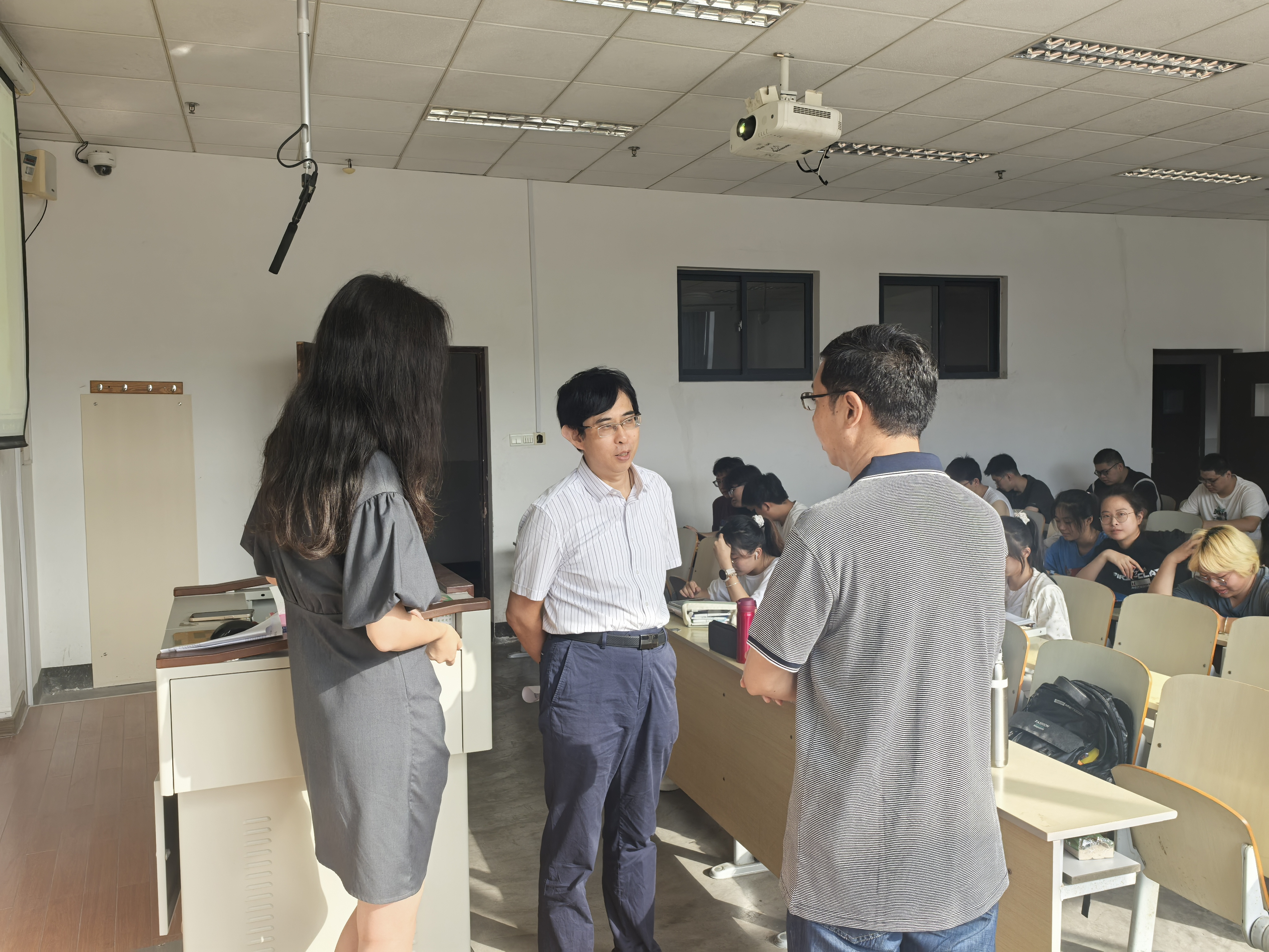 课前,学院领导与任课老师亲切交谈,深入了解新学期教学工作的整体进展,询问教学计划,了解教学疑点难点,同时也鼓励任课老师认真上好开学第一颗。授课期间,他们细致记录了教师的教学风貌、课程要点及教学策略,对课堂教学的整体成效、纪律维持以及班级学风进行了全面而深入的评估。课后,领导们就听课体验进行了交流讨论,并给出了宝贵的指导性建议。