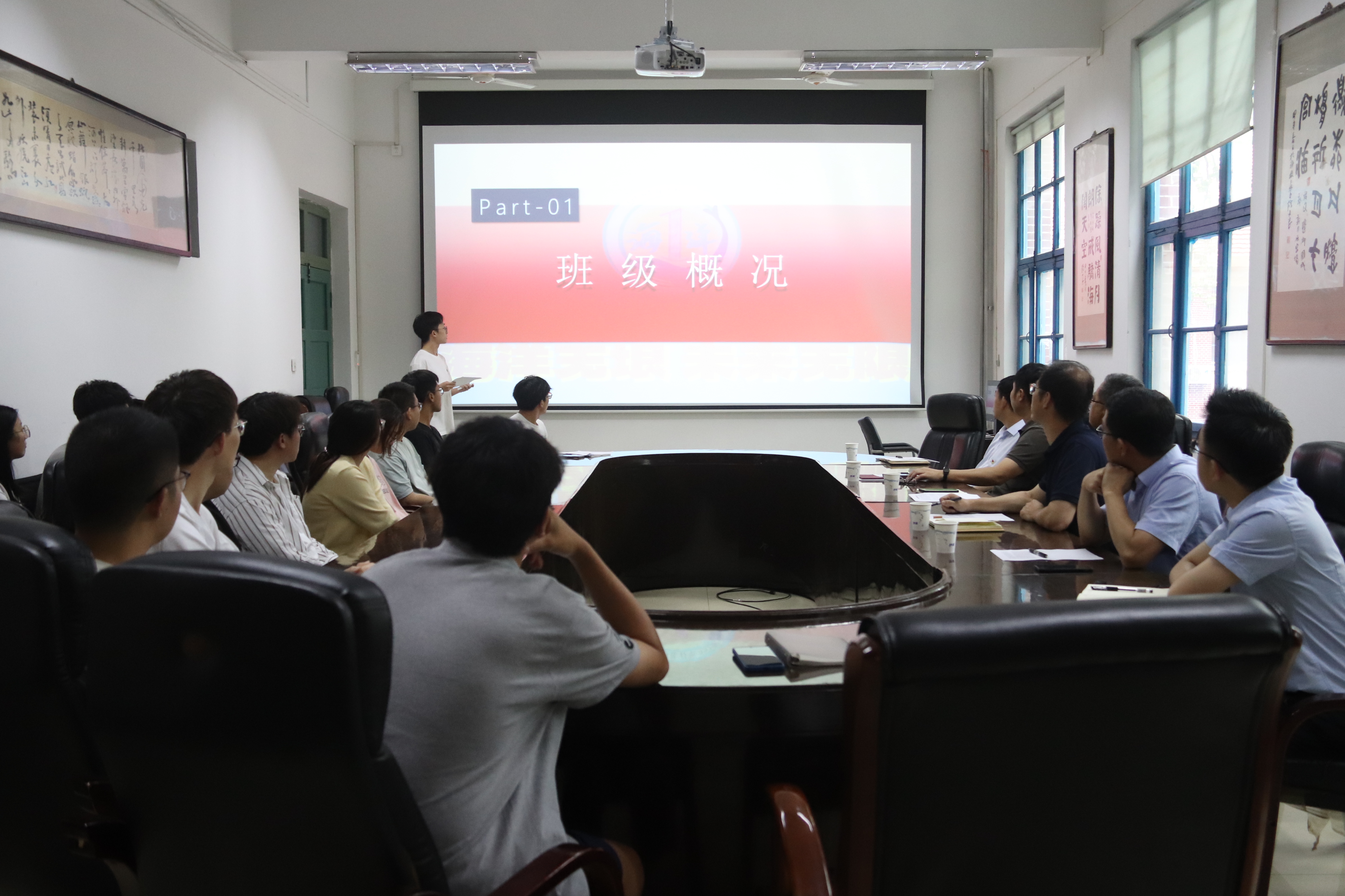 会上,三个班级的班长、团支书分别围绕组织建设、班风建设、学风建设、特色活动、班级荣誉、班级文化建设等方面通过ppt进行了汇报。