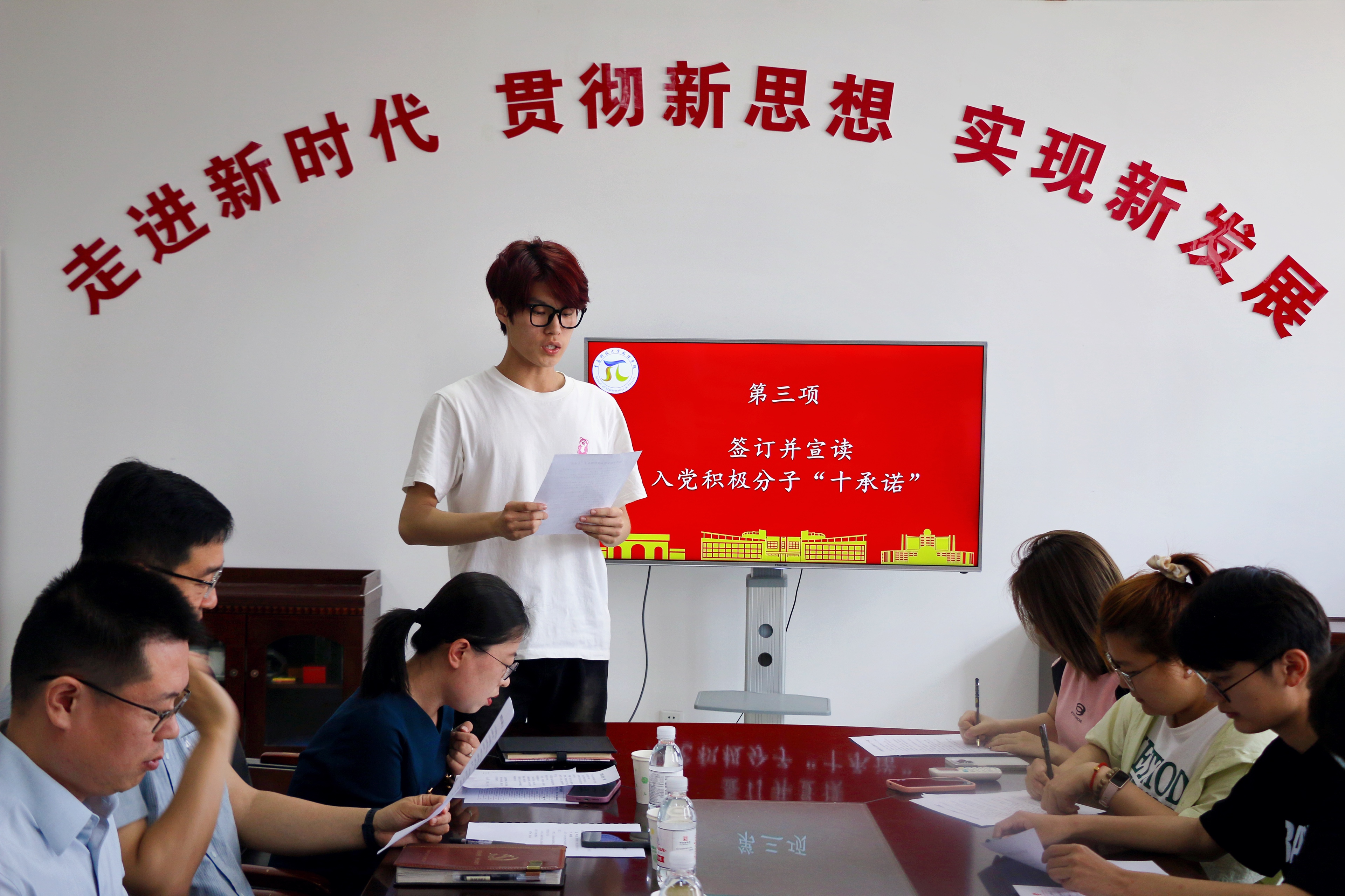 会上,应物231李志豪等6名入党积极分子代表依次做思想汇报,向党组织汇报自己近期的思想情况、学习经验、实践感悟,深刻反思不足,做出改进规划。应物231班张博涵作为代表宣读《学生入党积极分子“十承诺”》,2023级全体入党积极分子现场签订承诺书。