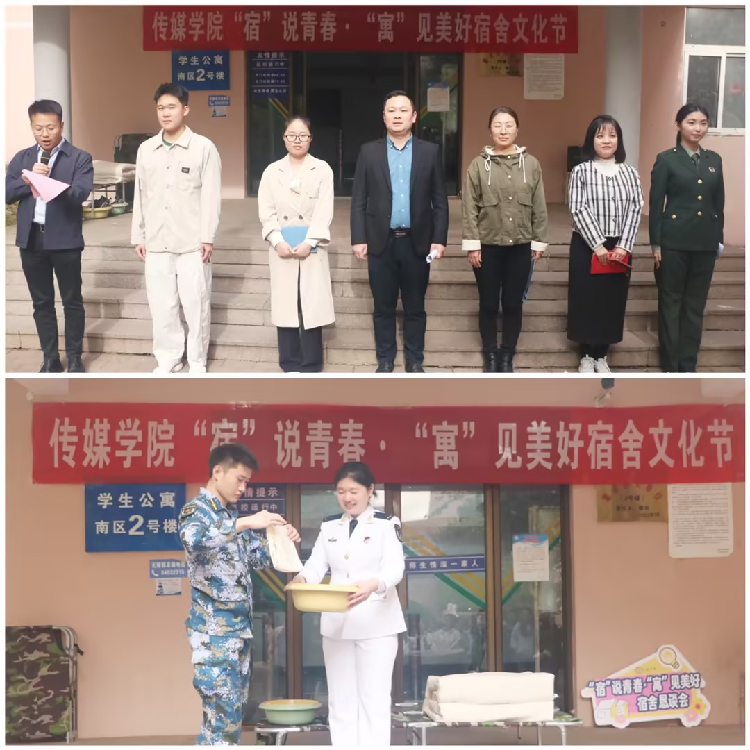 学院突出党建引领、管理协同、服务下沉、文化浸润和自我治理“创文明雅舍,筑和谐校园”为主题,营造健康文明、积极向上的宿舍文化氛围。坚持进宿舍问需问情,学院领导深入学生宿舍与学生代表恳谈座谈,聚焦学生的“急难愁盼”问题,了解宿舍环境、硬件设施及日常管理方面的难点堵点,认真记录并现场一一回应,以陪伴关爱暖人心。坚持树榜样对标对表,将新出炉的传媒学院2024年毕业生考研光荣榜在学生宿舍区和学院楼同步展示,邀请传媒学子身边的榜样——青岛市优秀退役大学生士兵针对行为规范、素质养成经验分享,邀请优秀退伍学子做内务整理与示范;坚持抓管理实,组织全体学生学习学校“标杆宿舍”和“优秀舍长”评选标准,并结合宿舍安全教育警示片等线上资源,针对宿舍中存在的安全隐患、不文明现象展开讨论,教育引导学生关注宿舍安全与文明宿舍建设努力将学生宿舍建成思政教育“加油站”