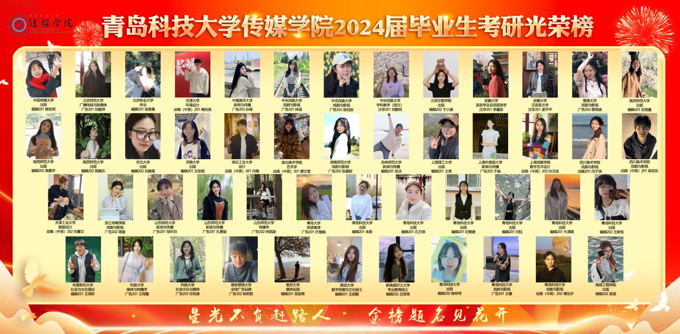 喜报!传媒学院2024届毕业生考研光荣榜展出