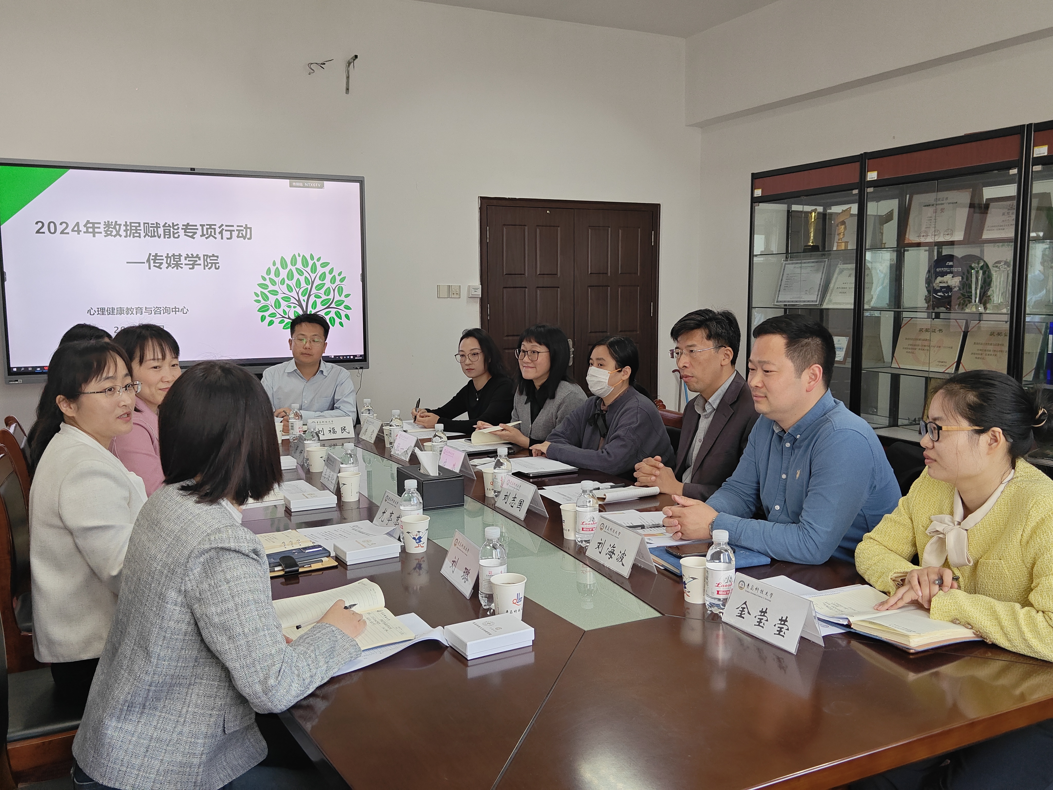 刘志国对尤亭亭一行的到来表示欢迎和衷心感谢他指出,学院各系负责人、辅导员班主任、任课教师要认真学习本次数据赋能心理健康专项行动内容,深入研究数据分析反馈出的问题,加强与心理中心老师的沟通交流,积极探索有效的解决方案,扎实做好学院心理健康教育工作,切实保障传媒学子安全安康安定