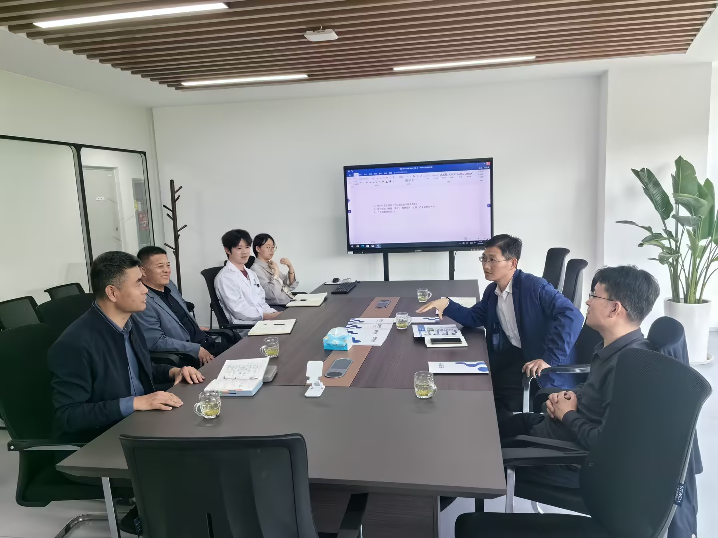 会前,陈良经理陪同海洋学院一行参观了企业的实验研发室和部分设备设施,详细介绍了企业的生物合成学研发平台和斑马鱼生物活性评价服务平台