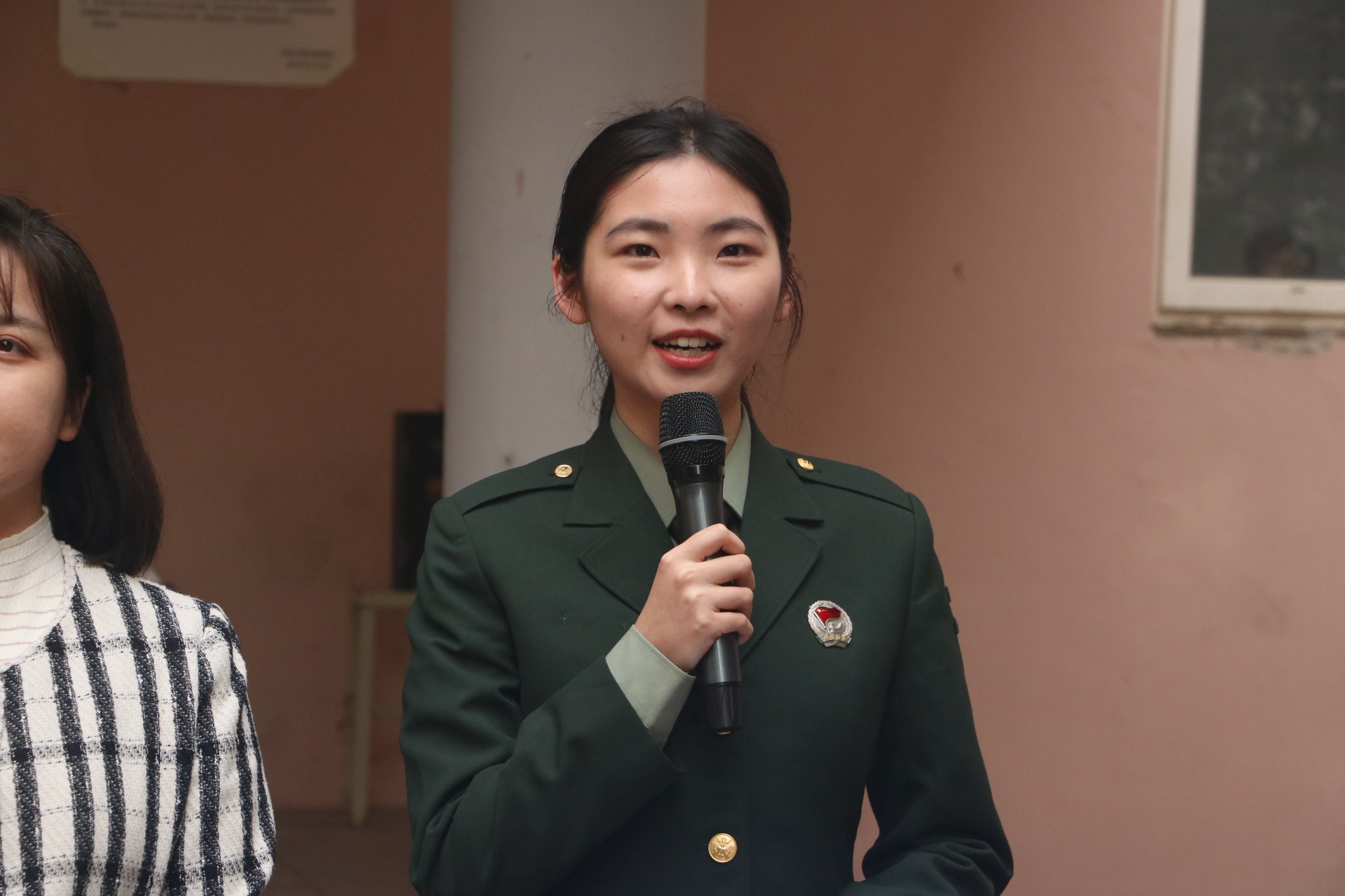 青岛市优秀退役大学生士兵、传媒学院汉学211班学生陈姝均作了典型发言,她作为大学生“身边的榜样”,分享了自己军旅生涯中的日常作息与内务标准,用自己的从军故事激励同学们怀揣梦想,砥砺奋斗,健康成长。