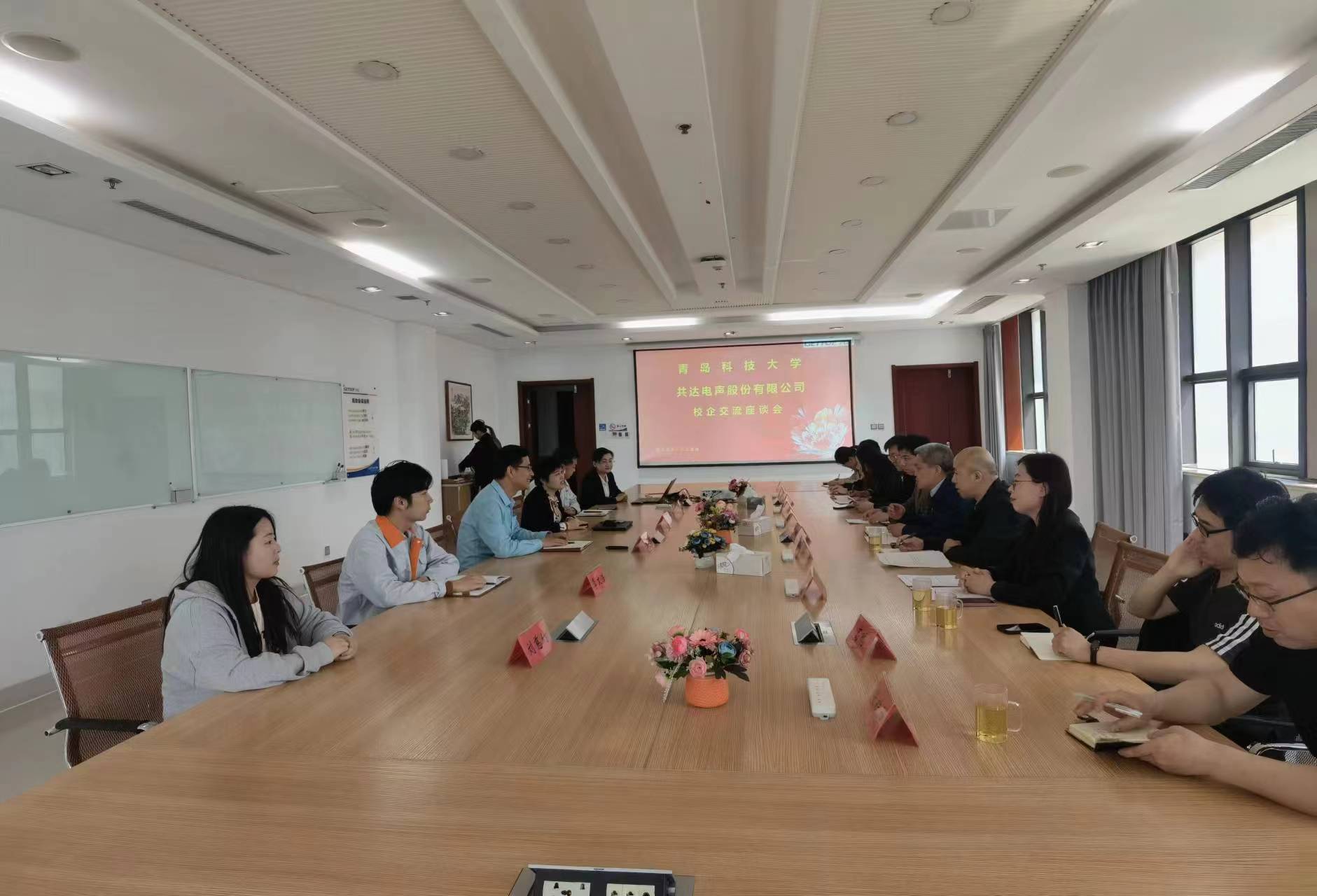在与共达电声校企交流座谈会上,高密校区党委书记马骥,数理学院党委书记刘保成、院长杨树国分别介绍了高密校区和数理学院的发展历史、学科特色、专业设置等情况。共达电声负责人介绍了企业在人才培养过程中的心得,双方围绕企业如何参与到深度人才培养体系中进行了重点探讨。就职于共达电声的校友分享了工作成绩、心得体会。