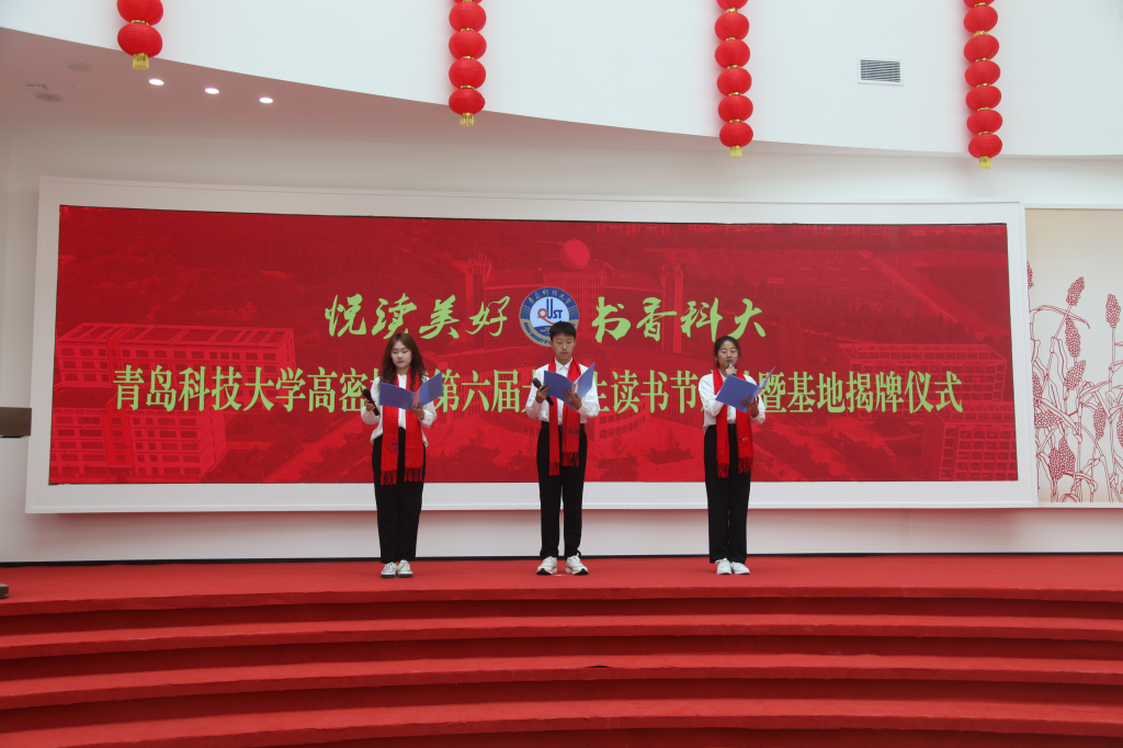活动上,李文平、罗细亮共同为本届读书节启幕;红高粱集团党委书记、董事长王国梁,高密校区党委书记马骥共同为两个实践基地揭牌;高密校区管委会副主任孙桂新为获得“阅读之星”的学生代表颁奖;学生代表表演了配乐朗诵《书香伴我成长》《不被大风吹倒》(节选)。