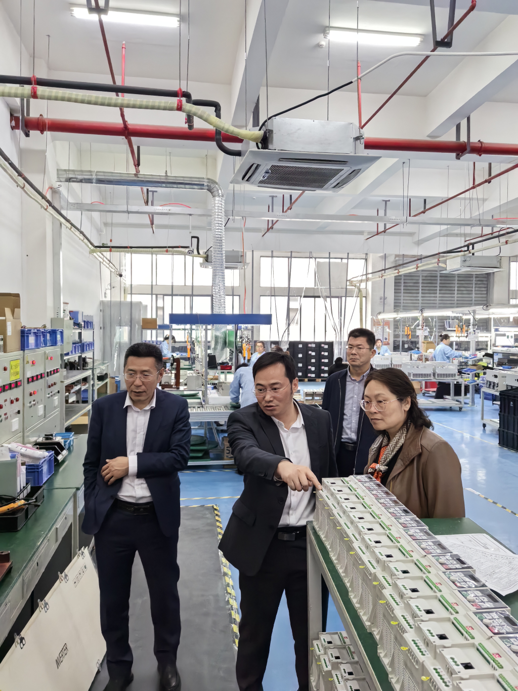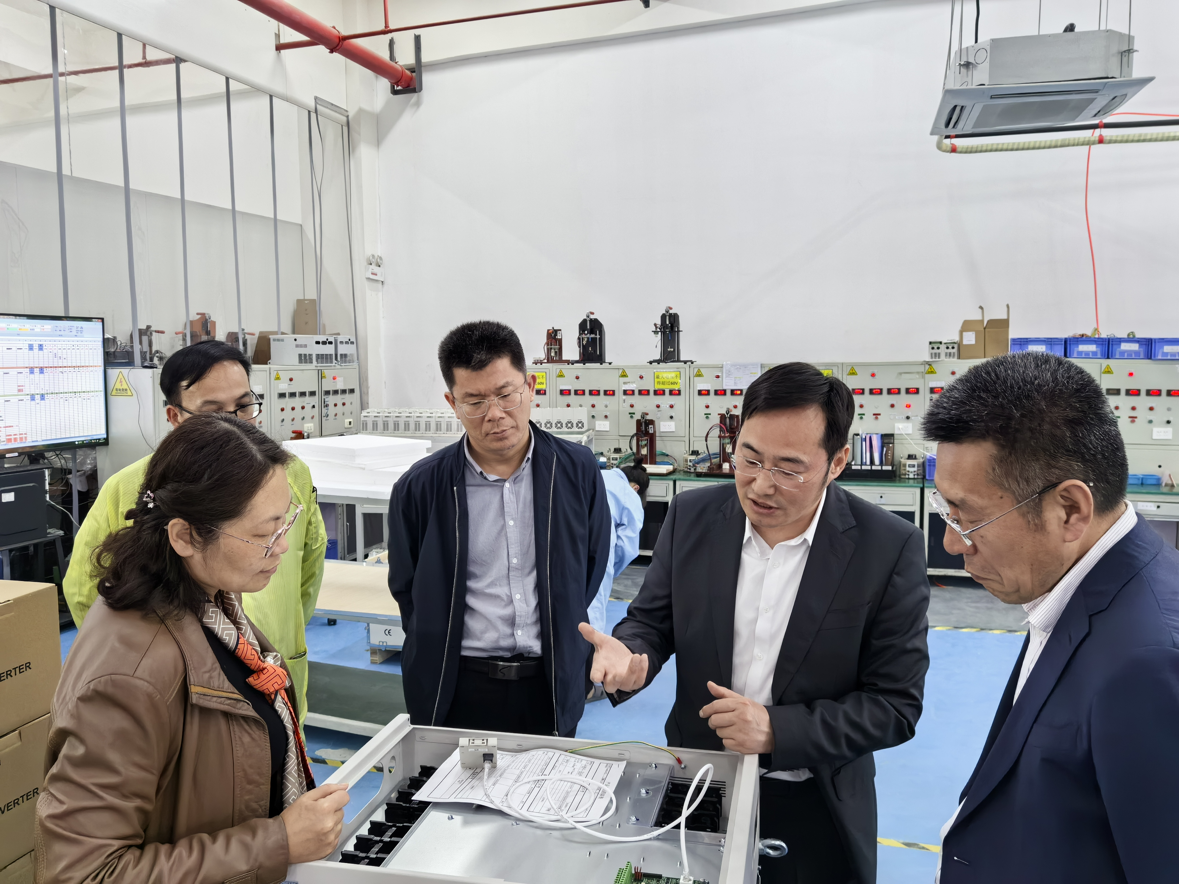 李卉一行参观了杰特公司生产车间。参观过程中,宋明忻详细介绍了公司在通用产品基础上,根据行业、客户实际需要,量身制定各种变频器、专用电机、PLC可编程控制器生产情况,公司产品广泛应用于冶金、石油、化工、机床、建材、市政工程、纺织、印刷、矿山等领域。李卉一行详细了解了各种仪器的型号、生产过程。