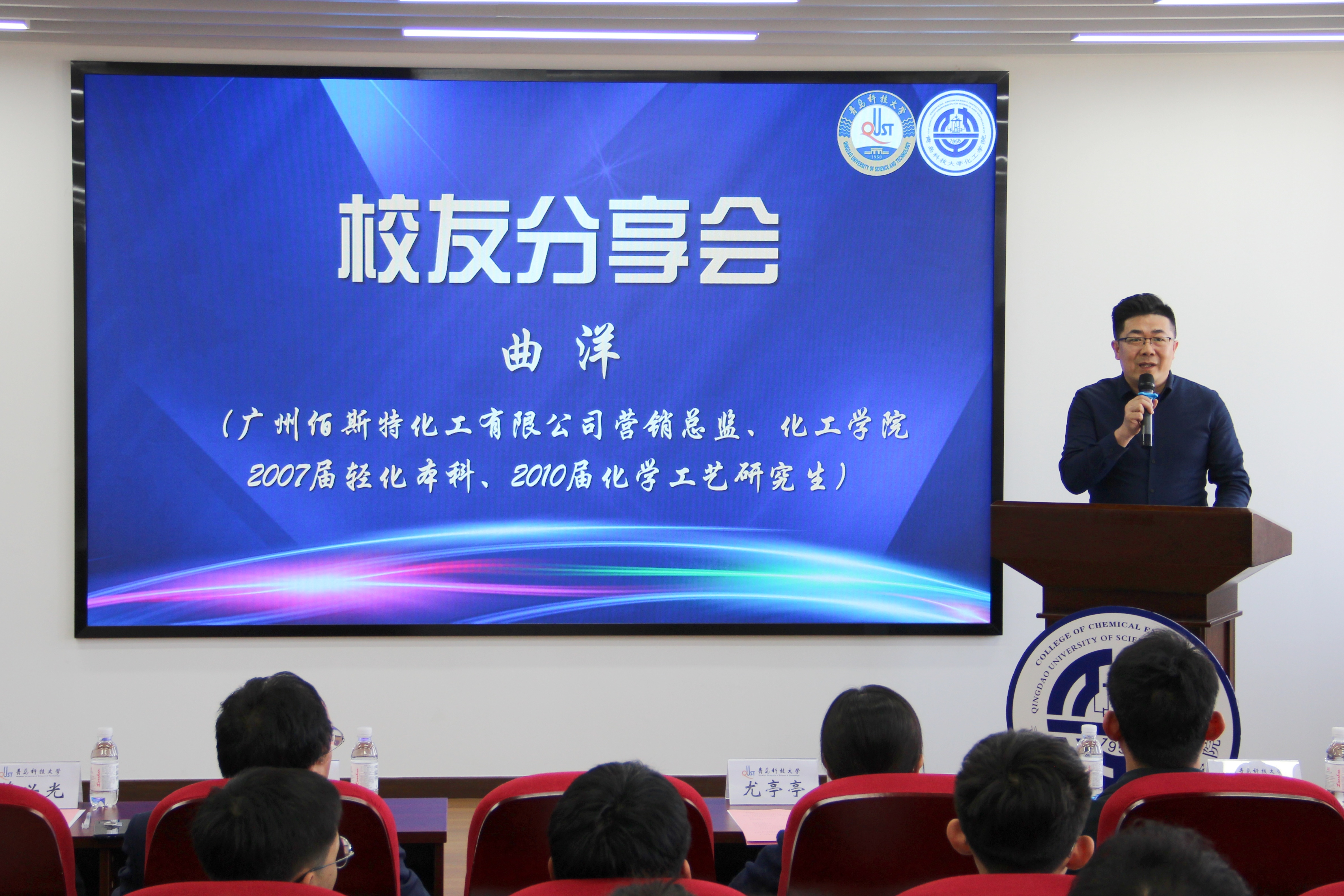 化工学院2007届轻化本科生、2010届化学工艺研究生校友代表,广州佰斯特化工有限公司营销总监曲洋作校友分享。他回忆了自己在母校的学习经历,介绍了“佰斯特励志奖学金”设立背后的故事,希望同学们能够扎实学好专业知识,战胜各种风险挑战,在未来能够创造出更加辉煌的成就。