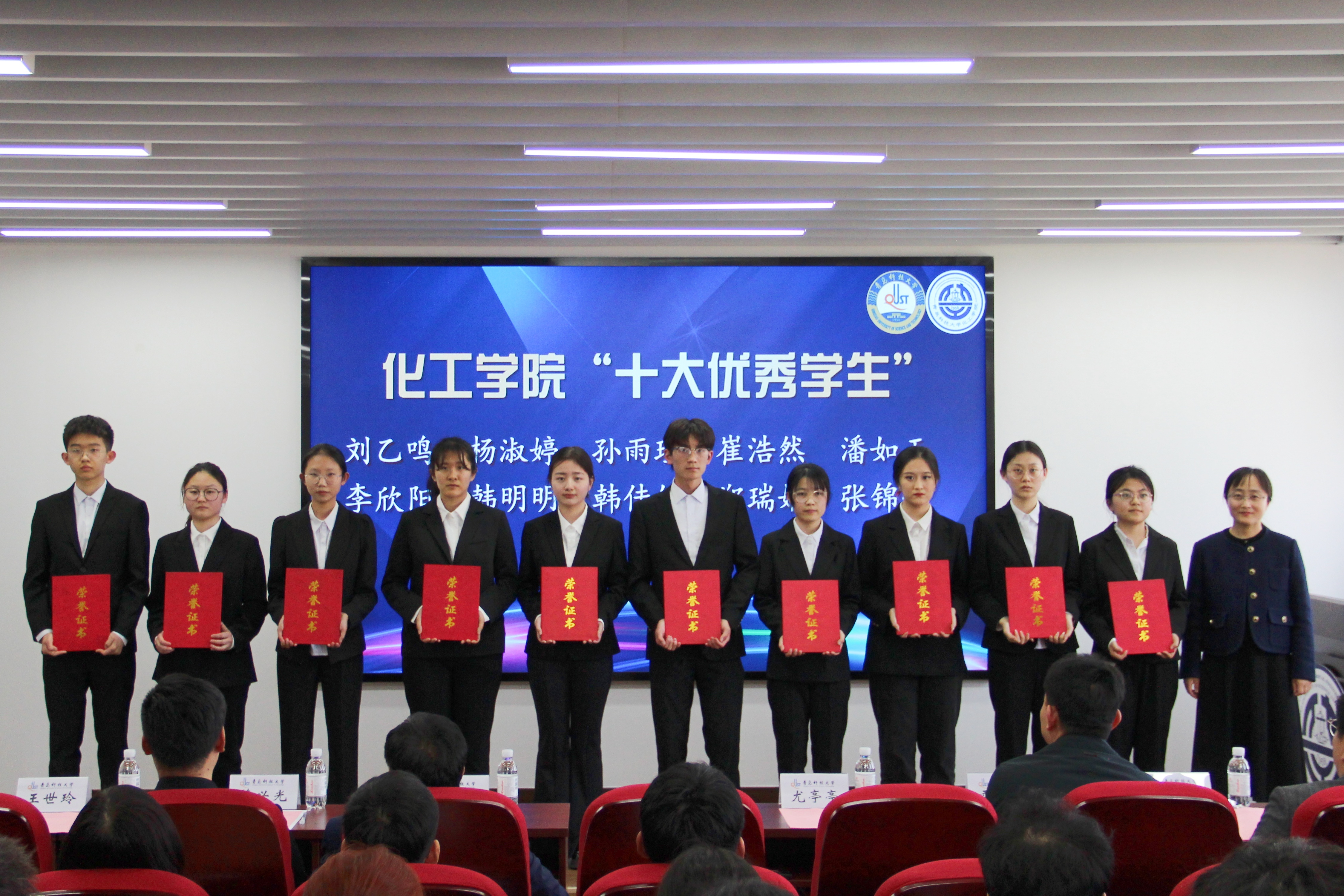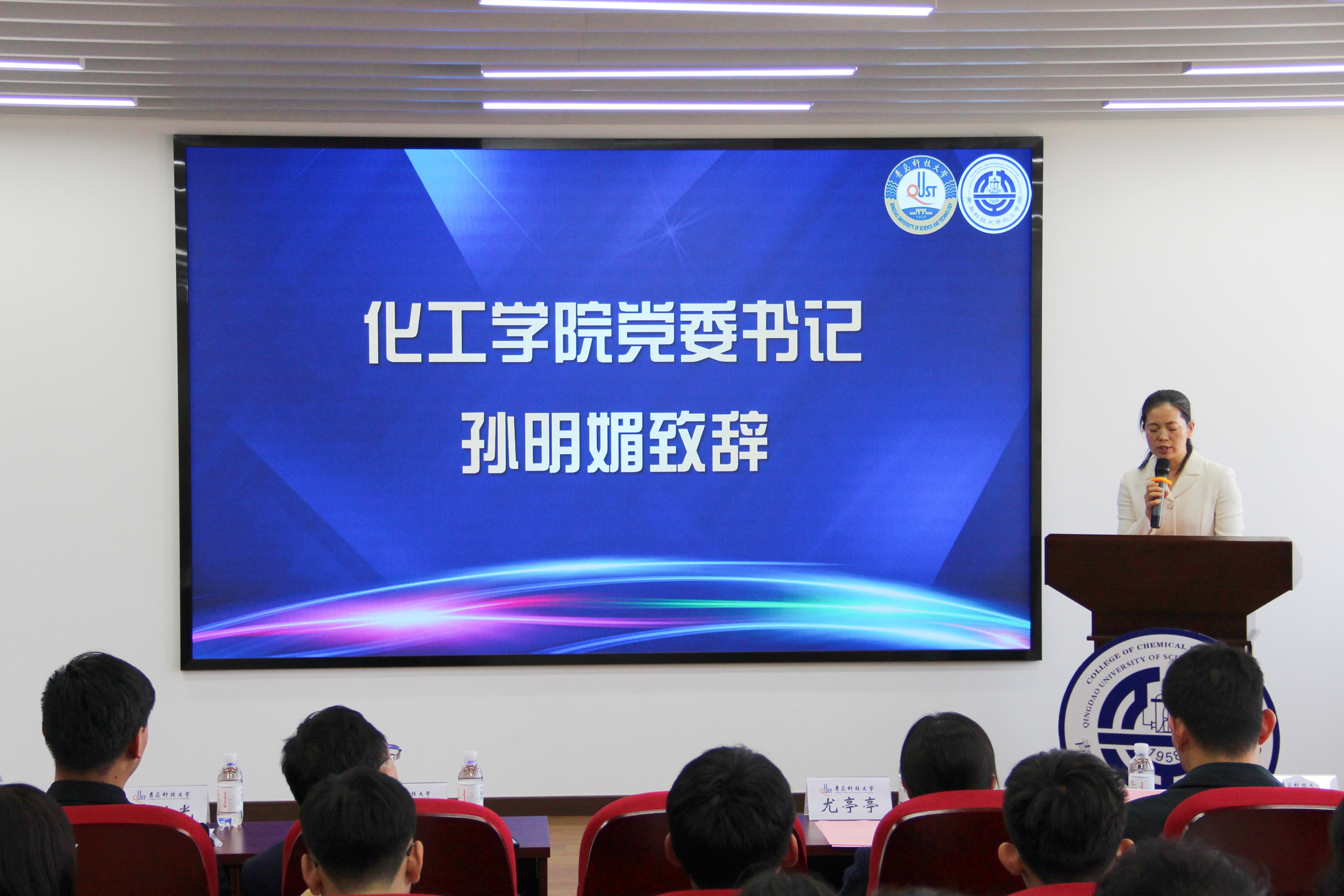 随后,化工学院举办“修德求真、善思笃学”学风建设月启动仪式,秦洪庆宣读学风建设月活动方案,全体参会学生签订《优良学风建设承诺书》并庄严宣誓,承诺从每天做起,从上好每一堂课开始,努力成为有理想,敢担当,能吃苦,肯奋斗的新时代青年。山东省优秀学生刘乙鸣、荣维迪,山东省优秀班集体化工实验 211 班在大会上进行风采展示。