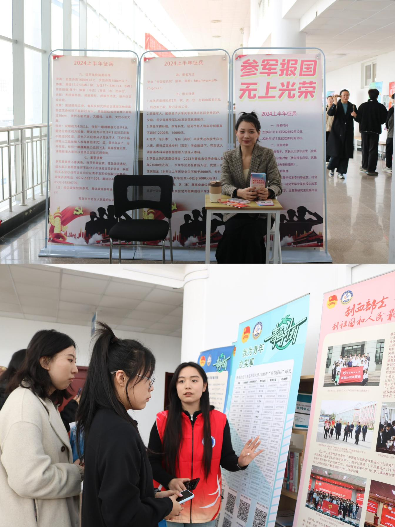 双选会预热期间,学院求职毕业生提供了就业大礼包,包含简历修改、岗位信息、面试辅导等个性化就业服务,将招聘会就业服务前置,让学生招聘会会前有准备、现场有信心、会后有回响。同时,现场还设置“征兵入伍”“青鸟计划”“西部计划”政策咨询处,青年志愿者及退役大学生现场宣讲,并悉心解答相关政策。