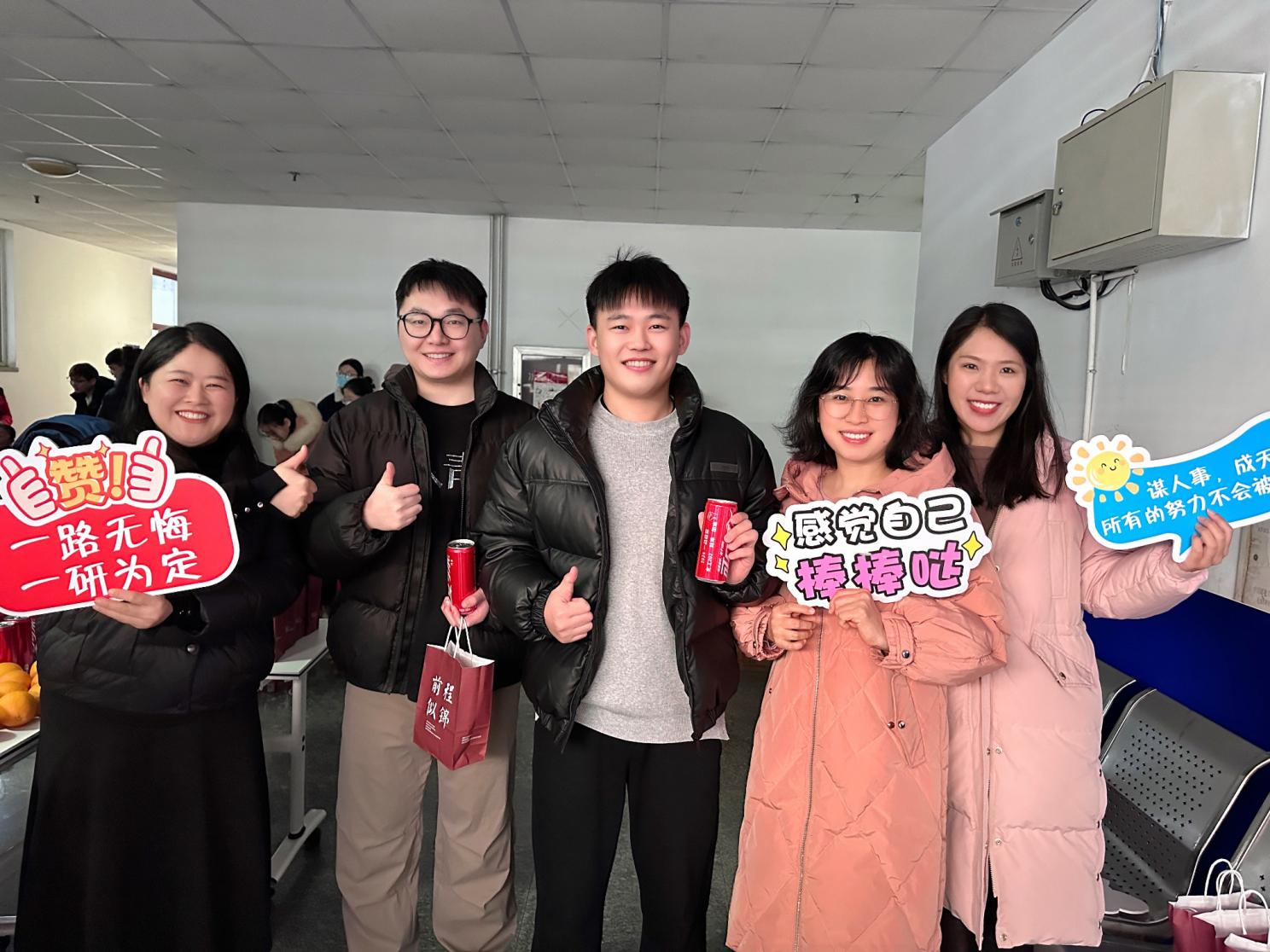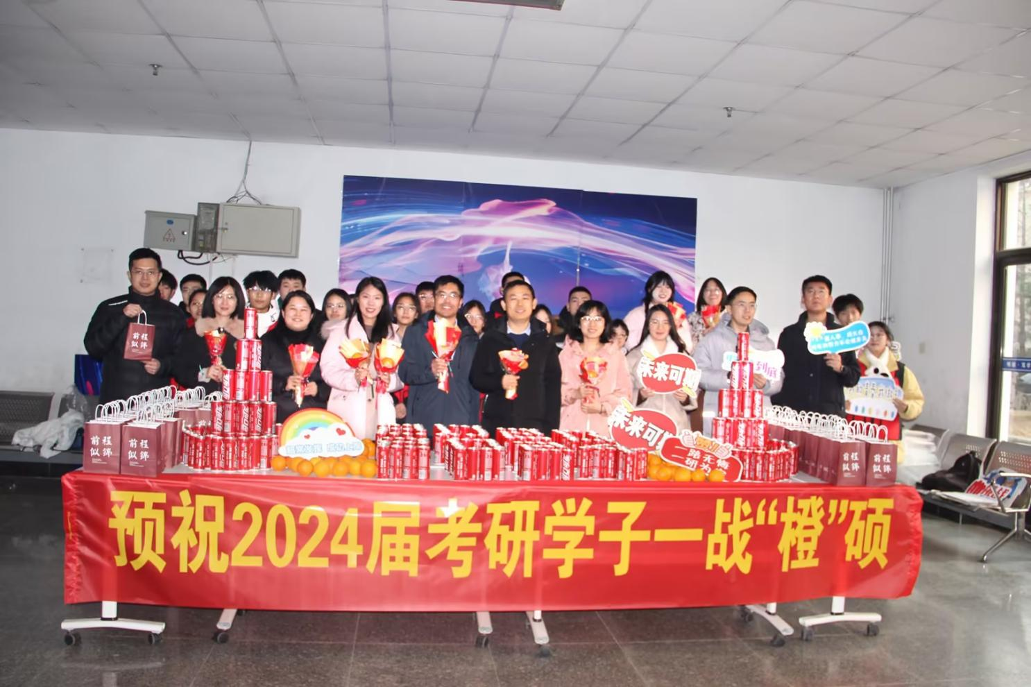 为了鼓舞考研学子士气,缓解考生复习备考压力,坚定学子上岸决心,增添复习备考动力化工学院12月19日在一教举办研途有你,心想事“橙”考研送温暖活动。学院党委副书记李春家,学工办主任秦洪庆全体辅导员及2024届考研学子参加活动。