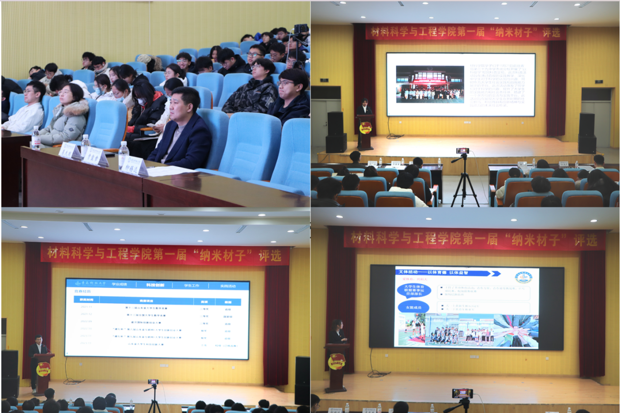 为丰富校园文化生活,营造良好的学院文化氛围,传承纳米精神,发挥先进榜样的示范引领作用,材料学院于近期举办了首届“纳米材子”评选活动,并于12月14日在四方校区尚舜学术报告厅组织了现场答辩。