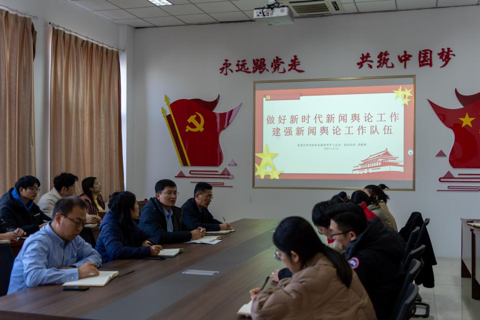 为创新推进机电工程学院思政育人工作,提升学工队伍新闻宣传和舆情处置工作水平,增强宣传文化工作的协同力、创新力,加强新时代新闻舆论阵地建设,12月12日下午,机电工程学院、法学院于机电楼529会议室联合开展做好新时代新闻舆论工作专题培训。学校党委宣传部副部长兼新闻中心主任、报社社长李鲲鹏应邀做题为“做好新时代新闻舆论工作 建强新闻舆论工作队伍”的主题报告,学校党委宣传部文化建设办公室副主任王文艳、学校党委宣传部宣传科科长刘奕辰,机电工程学院党委副书记兼副院长肖强法学院党总支副书记兼副院长王祥梅,机电工程学院、法学院全体专职辅导员参加培训。