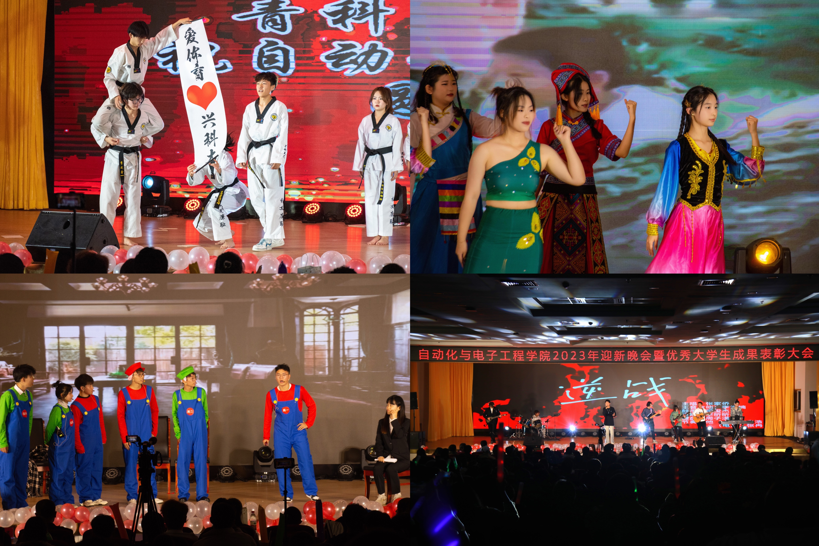音乐响起,爵士舞《Nobody can take me down》燃爆全场,青春洋溢,舞步生花;歌曲串烧唱出了青年心声,展现出“自”家人的激情昂扬;看!学长学姐们要上场了,由自动化学院学生会各部门负责人带来的节目将同学们直接拉回童年,“声”入人心、热闹非凡。