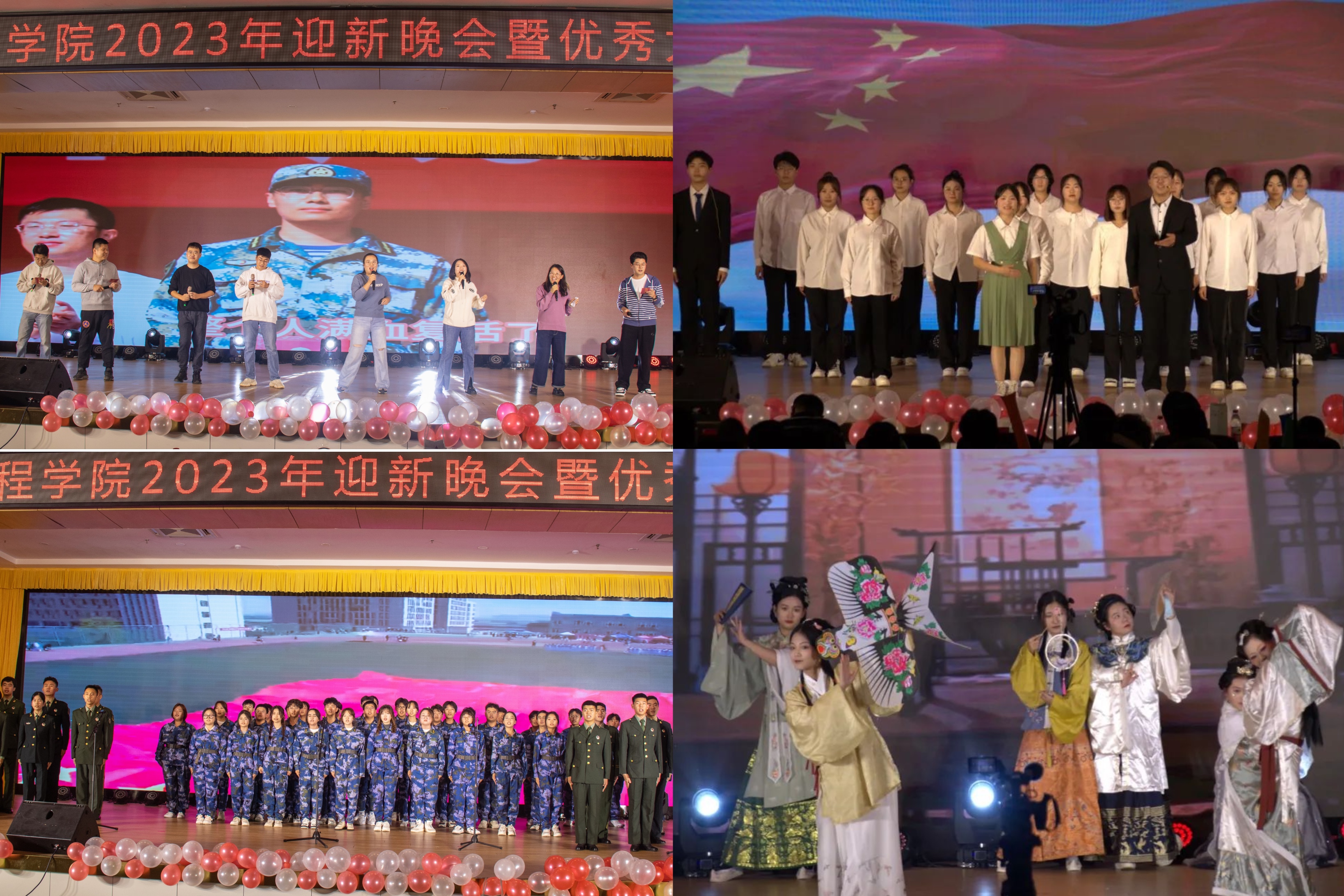 “罗纨绮绩盛文章,极服妙彩照万方”,汉服社带来的汉服走秀闪耀登场,跨越千年的服饰,在舞台上碰撞出文明的绚烂;诗朗诵《青春心向党》,对党的大声表白,饱含了“自”家青年人对党组织的向往,对社会主义的拥护,对国家的热爱。自动化学院合唱团倾情献唱《青春校园》和《当那一天来临》,校歌自由欢快与军歌威武雄壮,被淋漓尽致地展现出来!最后一个节目由团委老师带来改编歌曲《辅导员阵线联盟》,歌声中流露出对同学满满的关心与爱护,迎新晚会也在这充满爱的歌曲中圆满落幕。