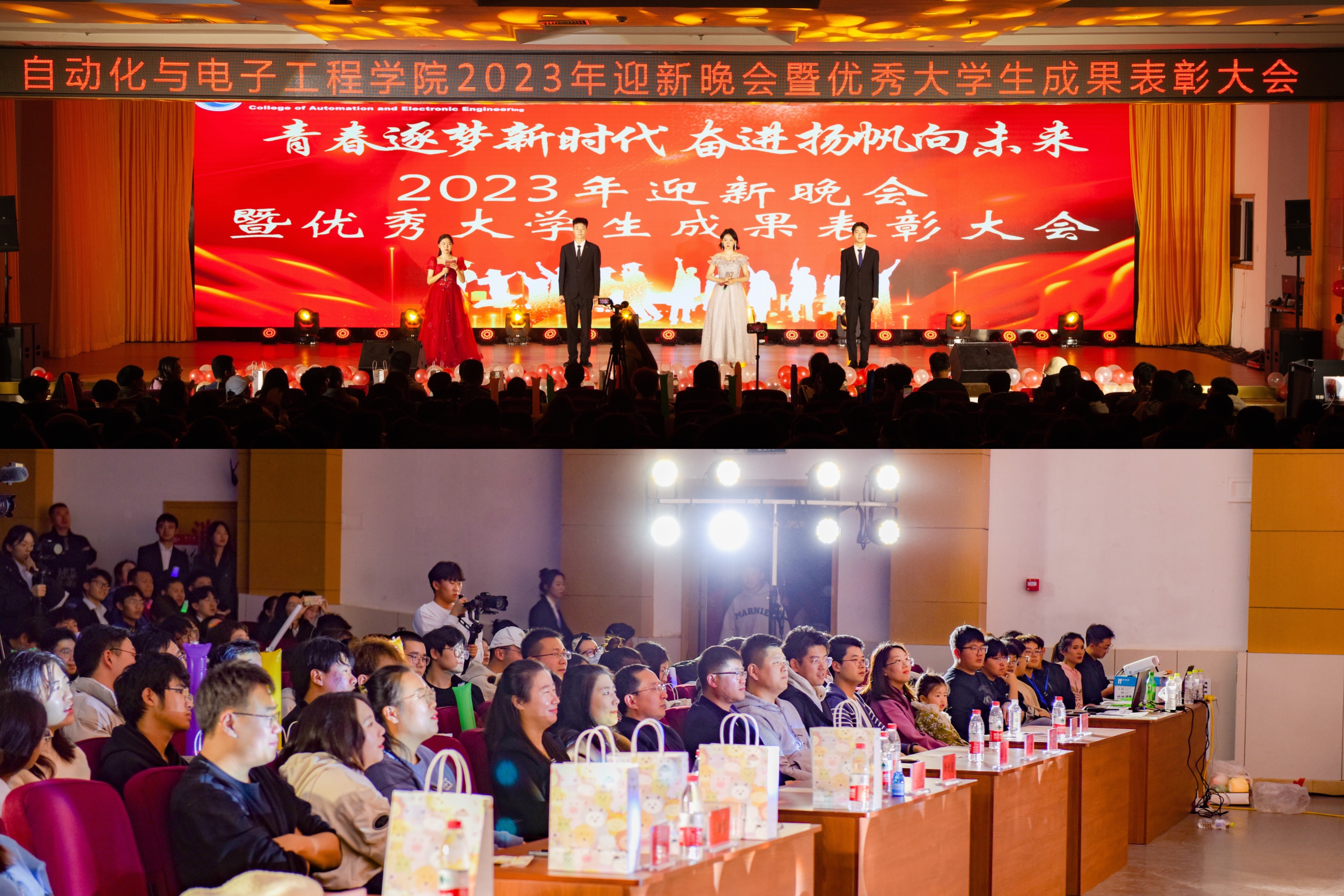 为进一步贯彻党的二十大精神,激励广大“自”家学子勇担时代重任,传承青春力量,11月26日晚,自动化学院于崂山校区第二报告厅隆重举办2023年“青春逐梦新时代,奋进扬帆向未来”迎新晚会暨优秀大学生成果表彰大会。本次出席大会的嘉宾有校团委副书记王邑,青岛展诚科技有限公司联合创始人、工程部经理、自动化学院校友李世密及青岛区负责人王虹,自动化学院副书记兼副院长马寒,各学院代表及自动化学院全体学生。本次大会通过微自化直播线上线下同步进行。