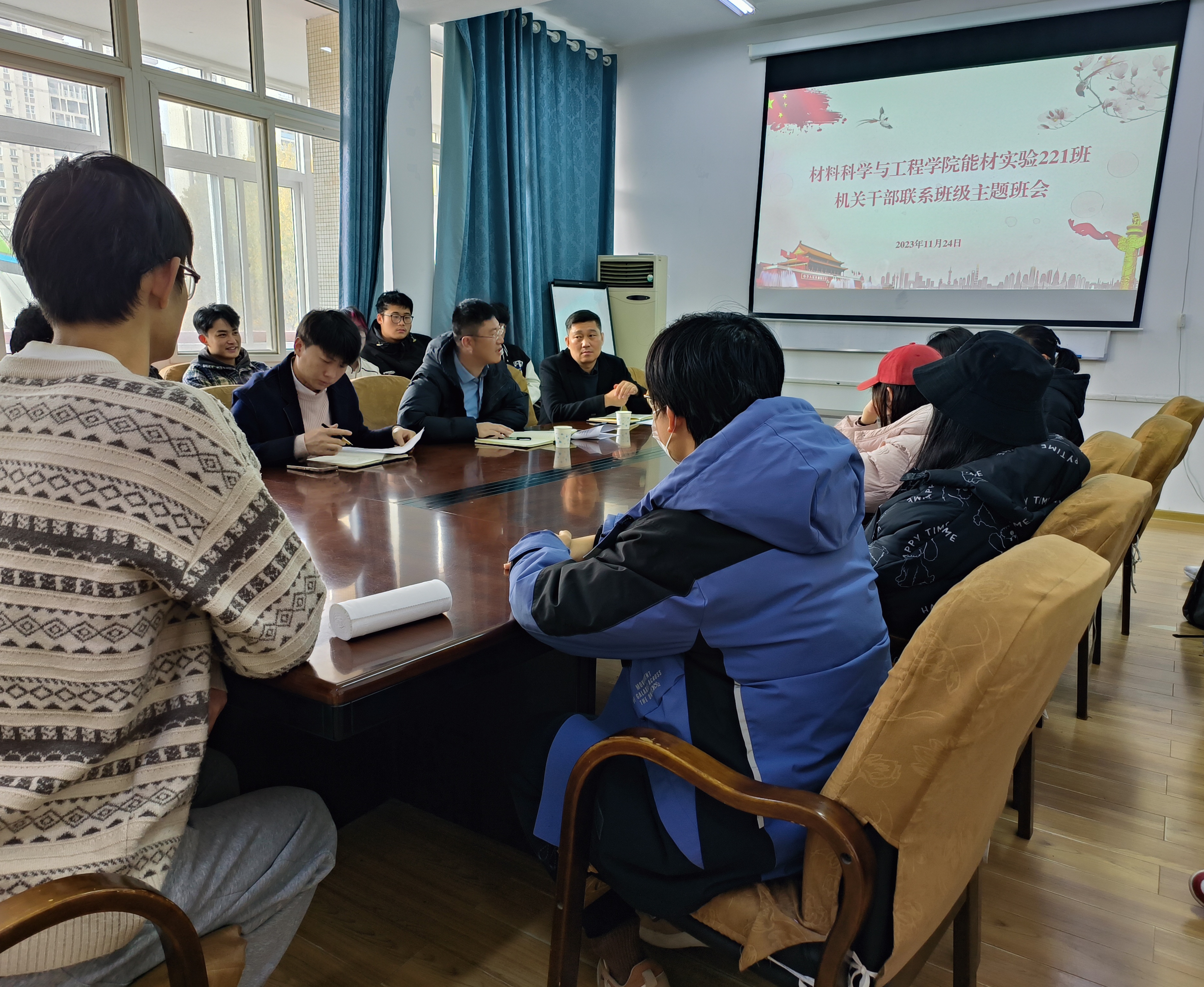 为进一步推动形成全员、全程、全方位育人机制,加强领导干部与学生的常态化交流,帮助学生解决实际问题,增强班级的凝聚力和向心力。学院材化222班、能材实验221班分别于11月21日下午、24日上午于203会议室举办了机关处级干部联系班级主题班会,校团委书记刘跃宁、副书记陈兵作为联系班级的机关部门处级干部分别出席班会、材料学院党委副书记兼副院长葛夫国、材化222班、能材实验211班全体同学参加班会。班会由辅导员刘亚鑫主持。