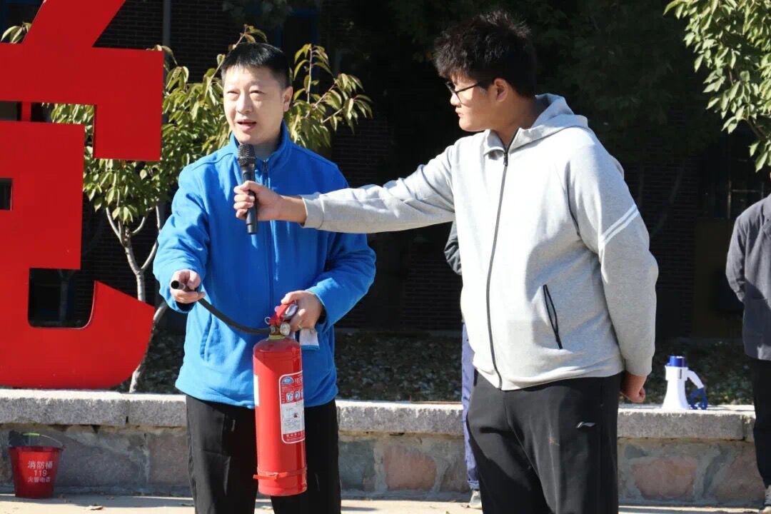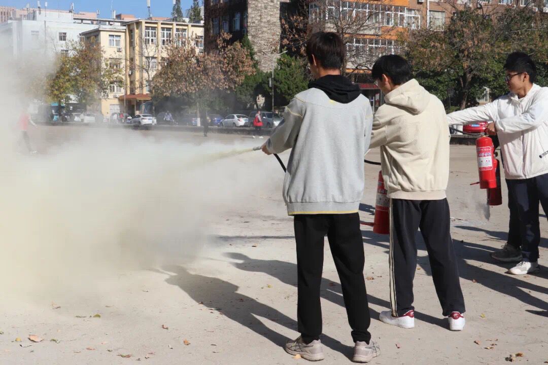 随后,仇立峰老师从日常生活中如何检查和消除火灾隐患、火灾发生时的应急处置及如何逃生自救、如何正确使用灭火器等几个方面进行现场教学,着重强调了干粉灭火器的使用技巧和注意事项。讲解结束后,同学们在老师的指导下纷纷轮流实操,真正体验了如何使用灭火器扑救初期火情。