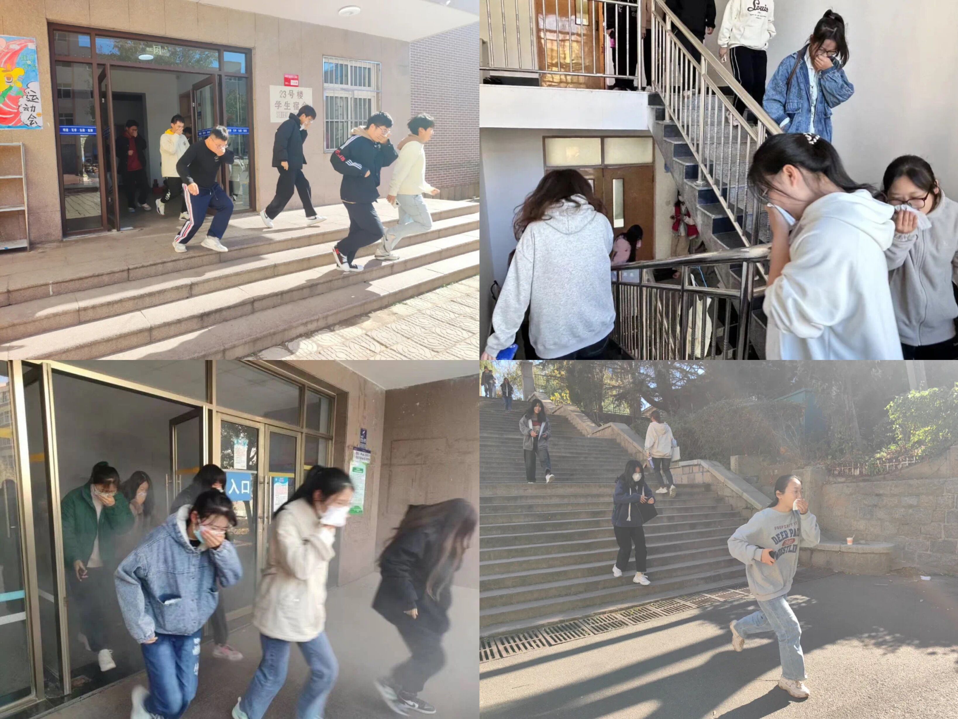 为确保演练工作快速高效有序进行,学院成立了专门的领导小组和现场指挥小组,并制定了安全、科学的演练方案和应急预案,学工办通过召开专题会议对演练的程序、内容、时间、纪律要求以及疏散路线等进行了安排部署。下午13时许,随着警报声响,疏散演练正式开始。各班同学在老师们和志愿者的指挥下,规范逃生动作,用湿毛巾捂住口鼻、弯腰小步,按照预定路线有序疏散到小五四广场的安全地带。在全体师生的默契配合下,整个疏散过程忙而不乱、井然有序,同学们安全、快速、有序撤离,达到了预期效果。