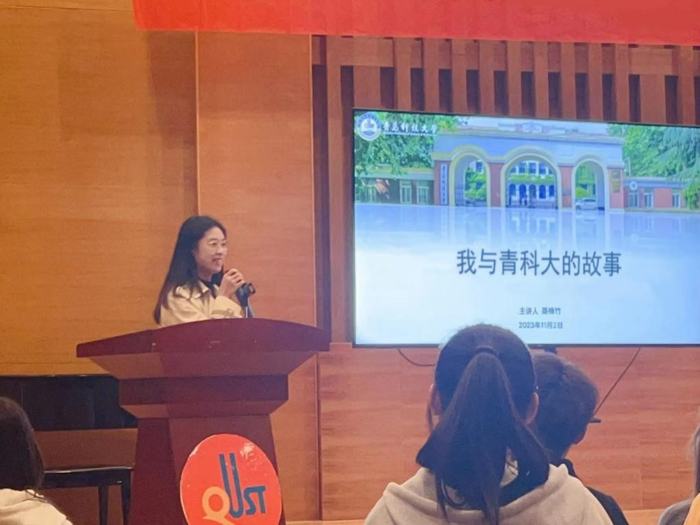11月2日,学院邀请留校任职的聂楠竹老师为在校学生做“我与青科大的故事”专题讲座。她讲述了在科大九年求学时光的所见所闻,学校发展至今成绩突出,是因为善于不断地进行工作总结和不断地提出新的工作目标,是因为全体师生员工能立足平凡的工作岗位,发挥自己应有的作用。与会同学们备受感动和鼓舞,相信只要努力学习,不断发扬“明德、笃学、弘毅、拓新”的校训,同心同德,共同努力,定能加快建设特色鲜明、走在前列的高水平大学。