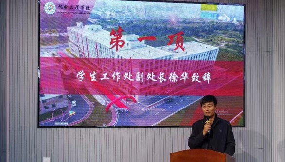 机电工程学院党委副书记兼副院长肖强宣读《机电工程学院宿舍文化节实施方案》。后勤处公寓管理中心隋玲老师为学院标杆宿舍颁发锦旗。机电工程学院2021级优秀宿舍学生代表王亚磊发言,进行“公寓的故事”优秀作品舍歌演唱以及诗朗诵“幸遇青科大,浓浓宿舍情”。