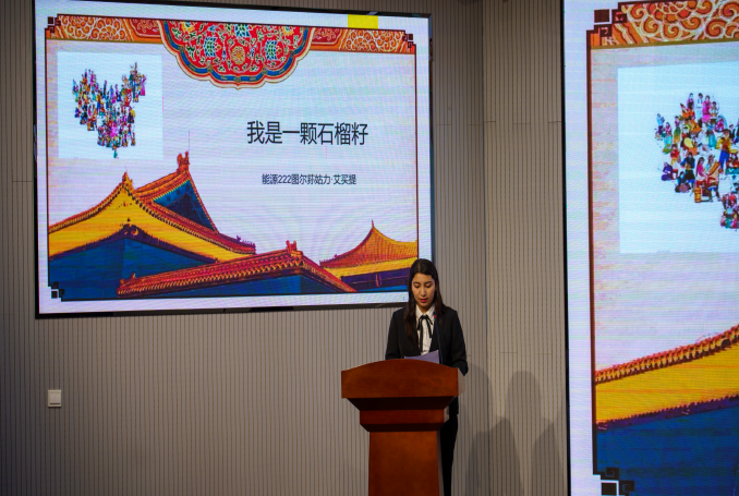 赛前,王娟娟老师致辞。王娟娟谈到,希望各民族同学以此次主题演讲大赛为契机,厚植家国情怀,铸牢中华民族共同体意识,让青春在以中国式现代化全面推进中华民族伟大复兴的新征程中绽放绚丽之花。