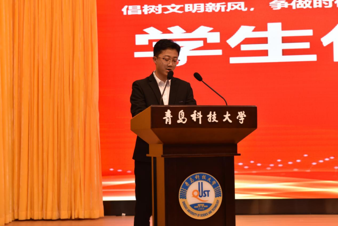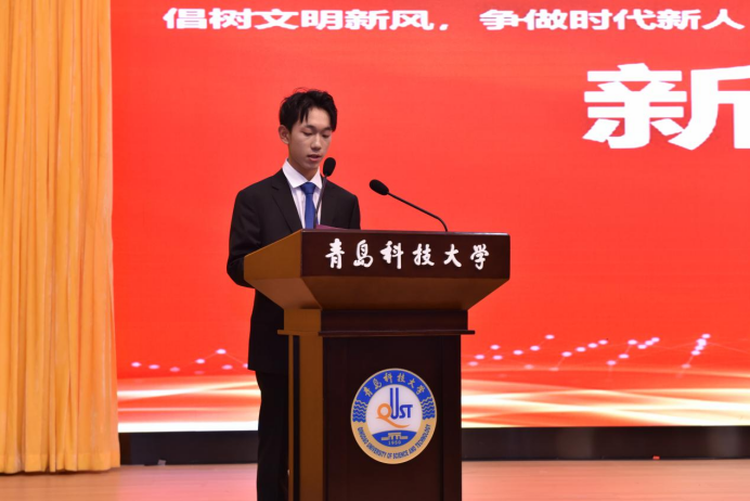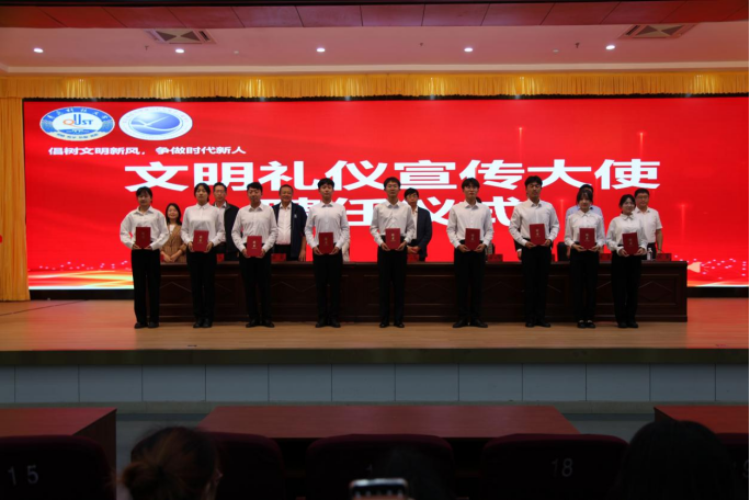 活动现场为学院校园文明宣传大使颁发聘书,学生会主席团成员李雨泽宣读了《自动化与电子工程学院校园文明建设倡议书》,新生代表师宜昂发言。