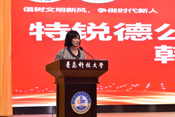 韩增雪介绍了青岛特锐德电气股份有限公司的基本情况,回顾了公司成立以来与学校和学院的合作关系,并祝愿2023级学生学有所成。