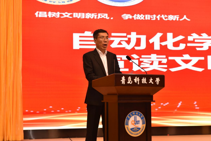 为进一步推进学生文明素质建设,营造良好的校园文明氛围,引导青年学生以积极向上的精神风貌迎接新一轮本科教育教学审核评估工作,10月19日晚,自动化学院于崂山校区第二报告厅召开“倡树文明新风,争做时代新人”文明建设月启动仪式暨2023级新生入学教育大会。学校党委常委、副校长兼自动化学院院长李少远,青岛特锐德电气股份有限公司人力中心总监韩增雪、人力资源部部长张莹,自动化学院党委书记吕德谦、副院长赵彤、副院长陈为、副院长曹梦龙及全体学工办老师出席本次大会,2023级新生班主任、2023级全体新生、特锐德助学金获得者参加。大会由学院党委副书记兼副院长马寒主持。